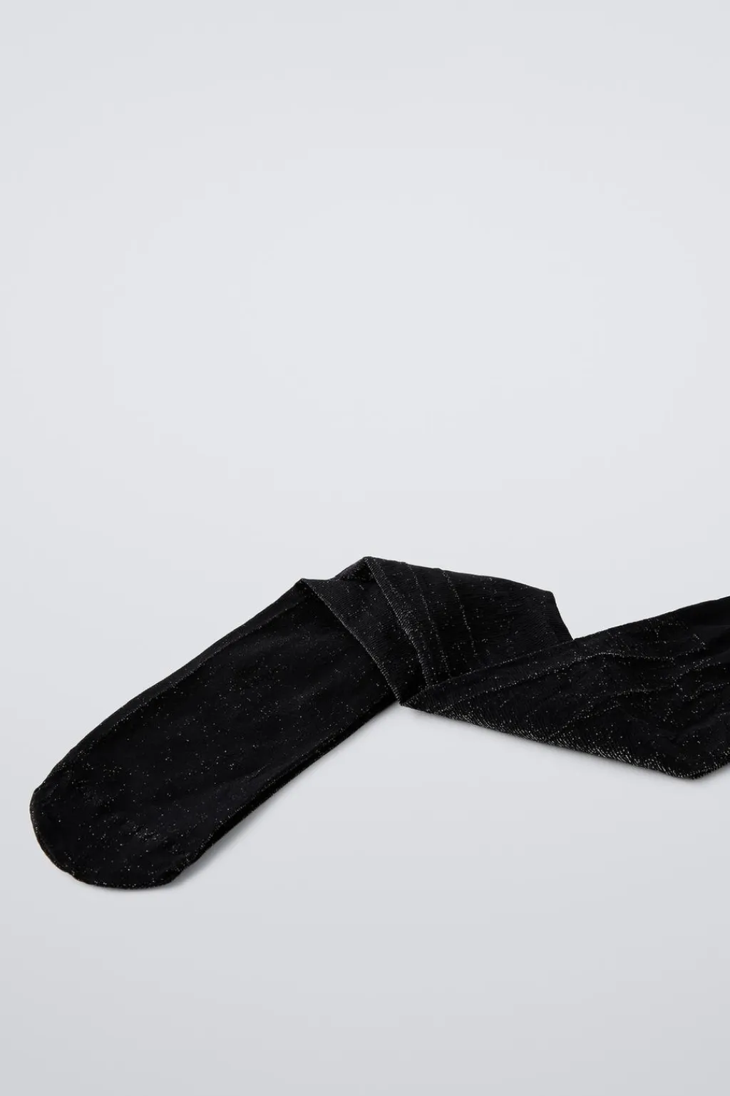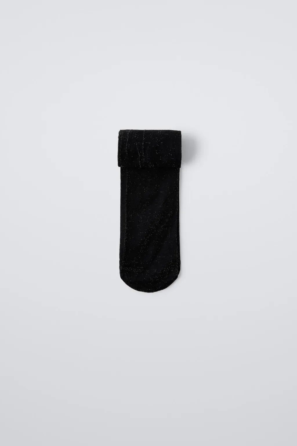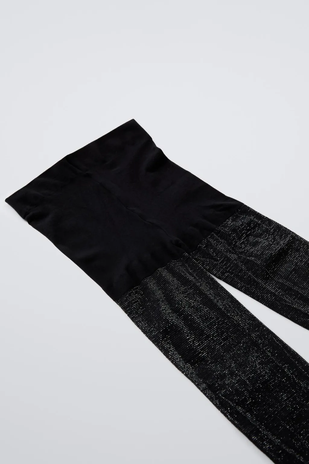 Media de microfibra con cinturilla elástica. Detalle brillos.