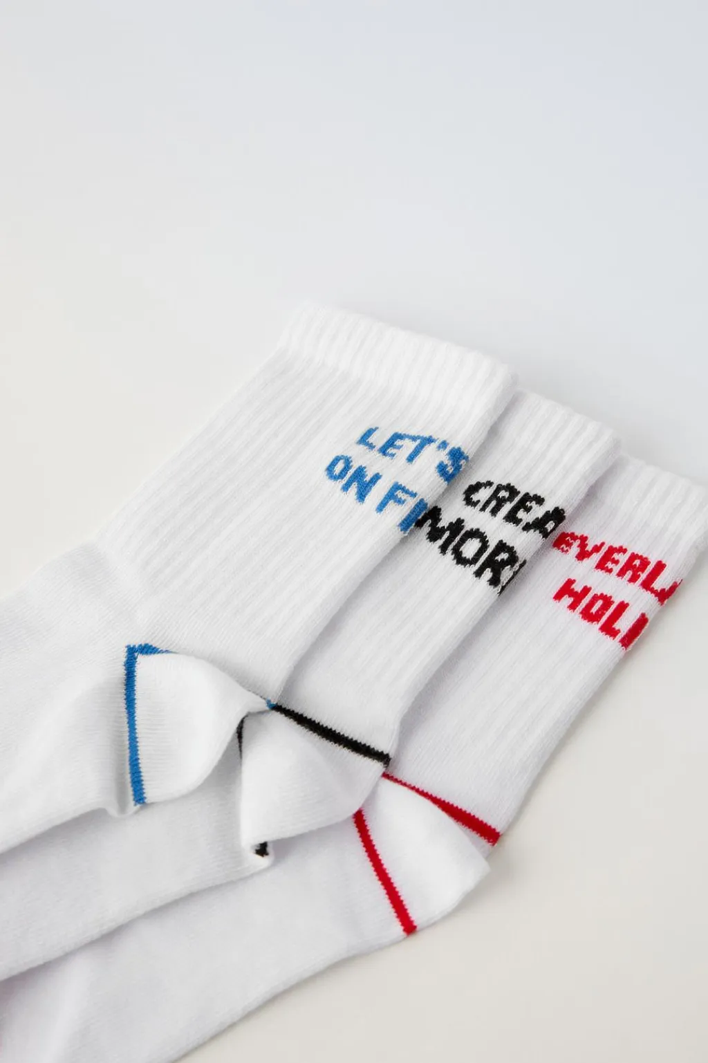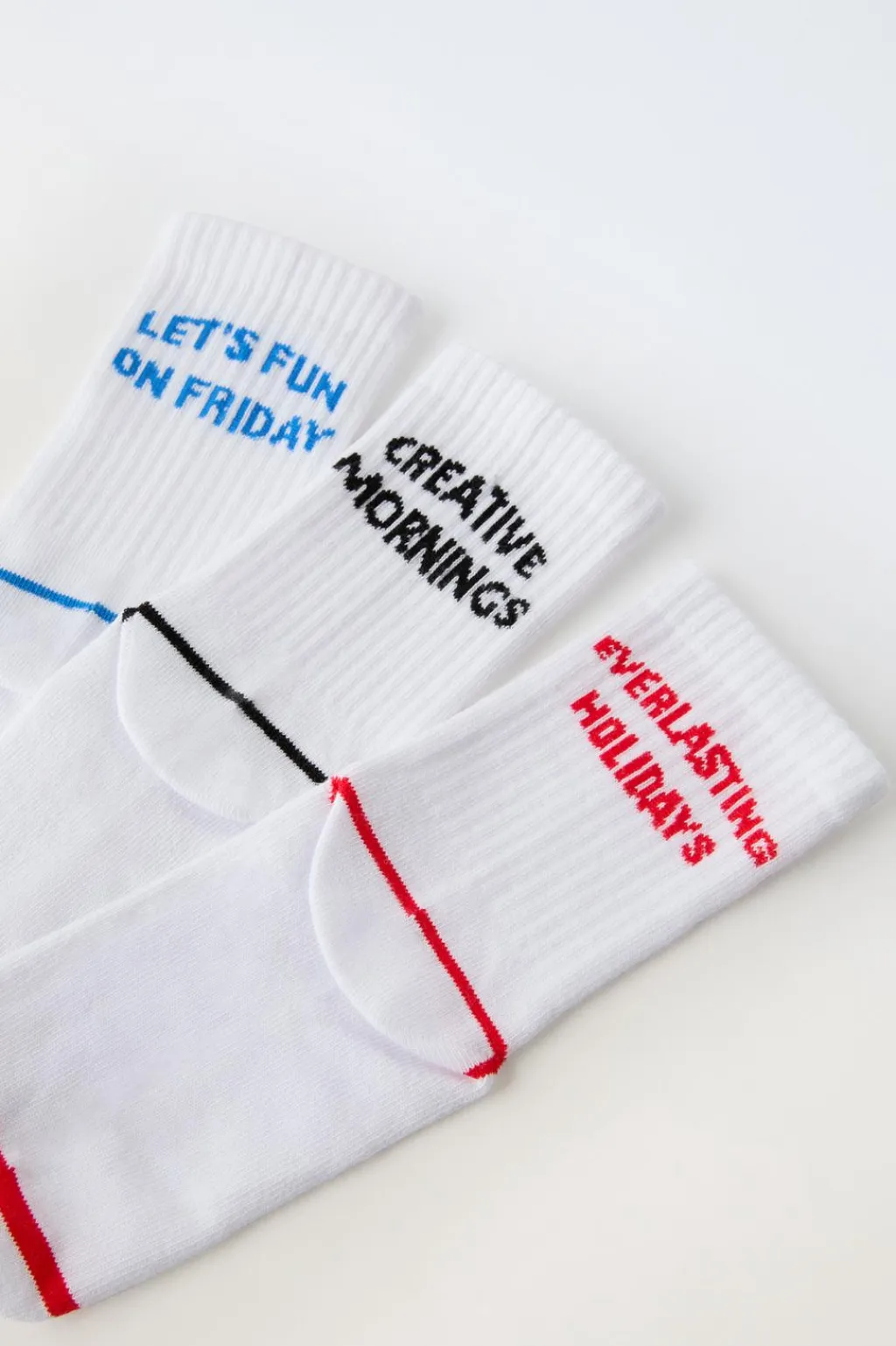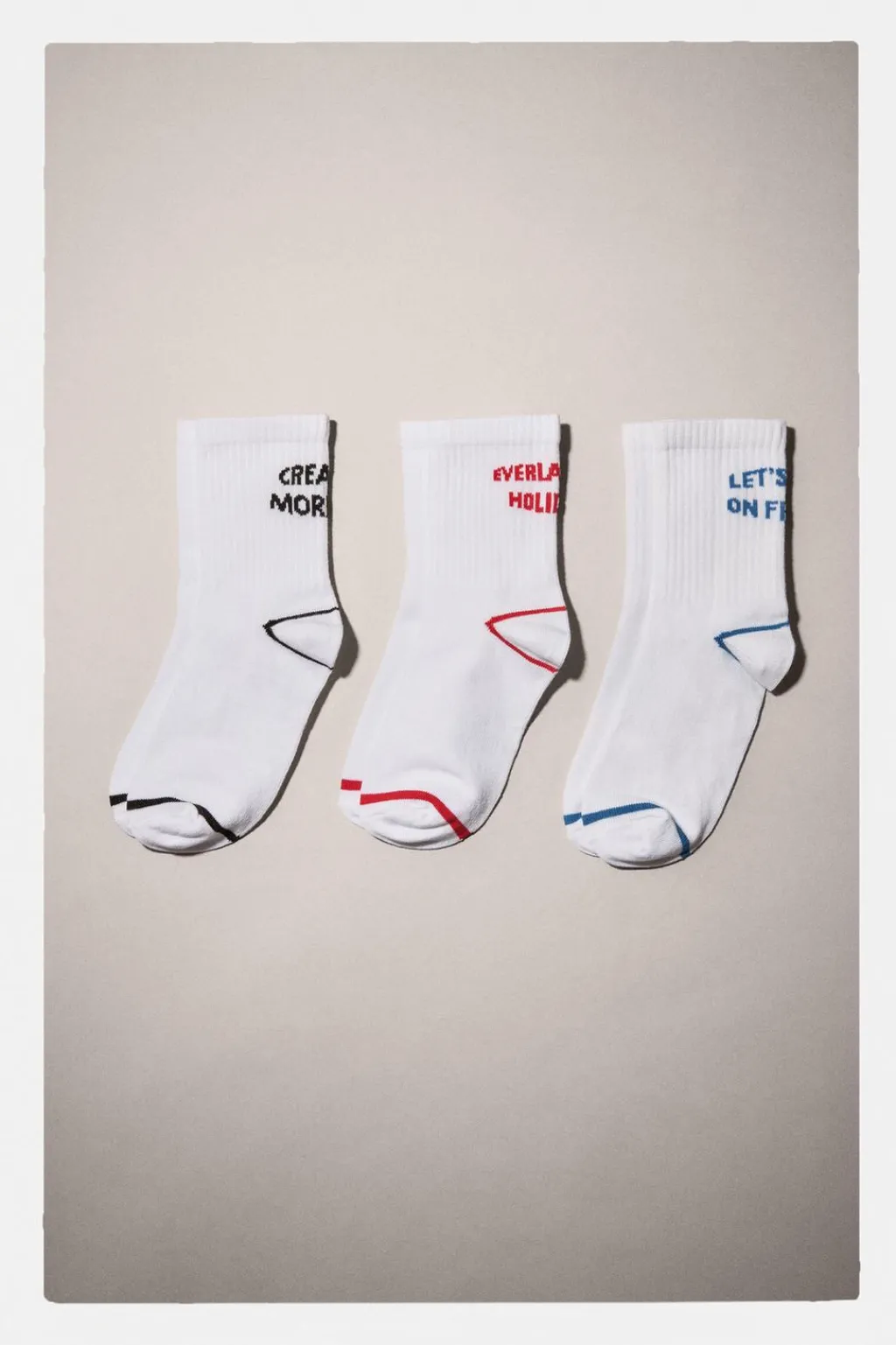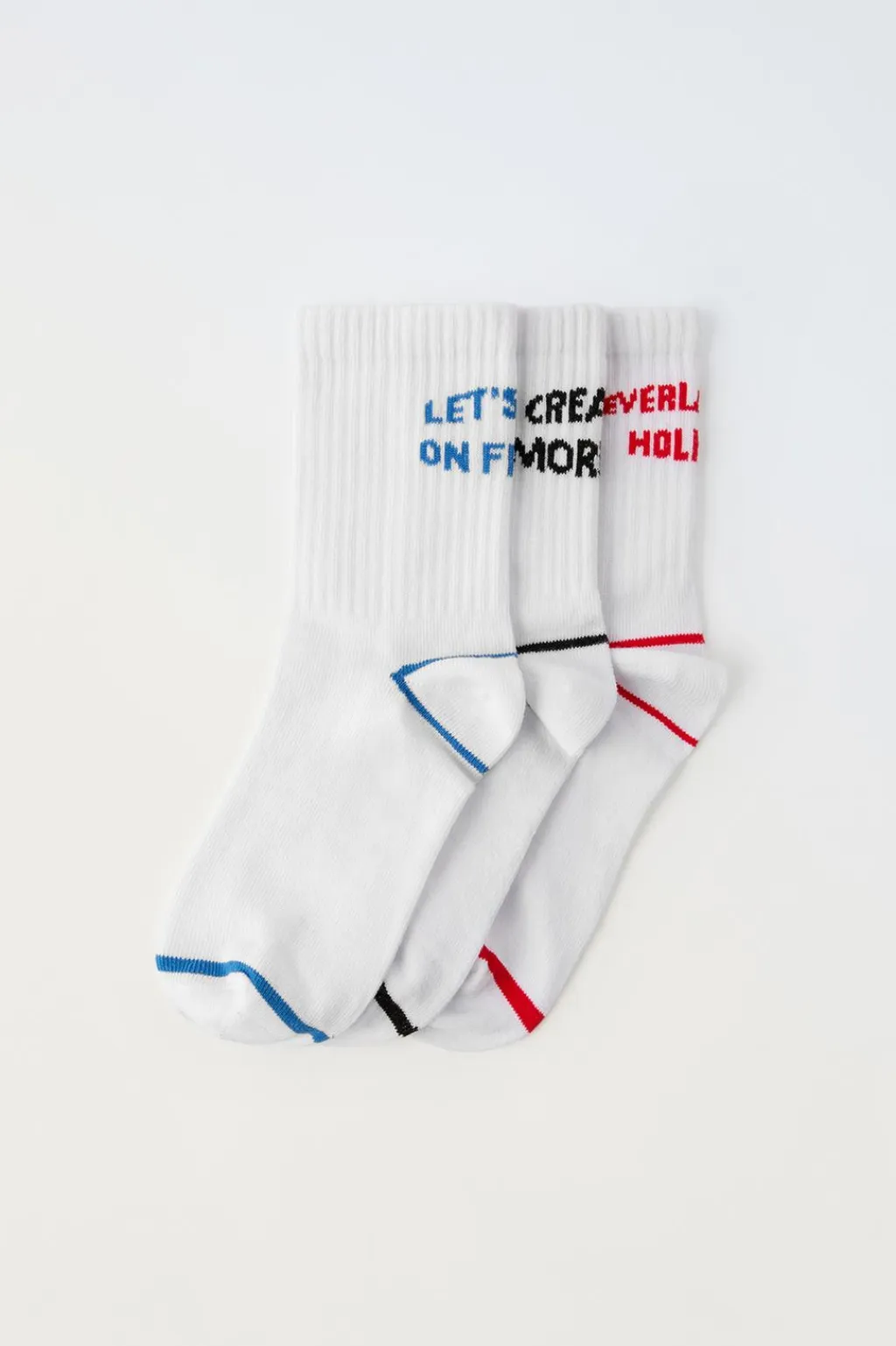 Pack de tres calcetines deportivos largos. Estampado texto.