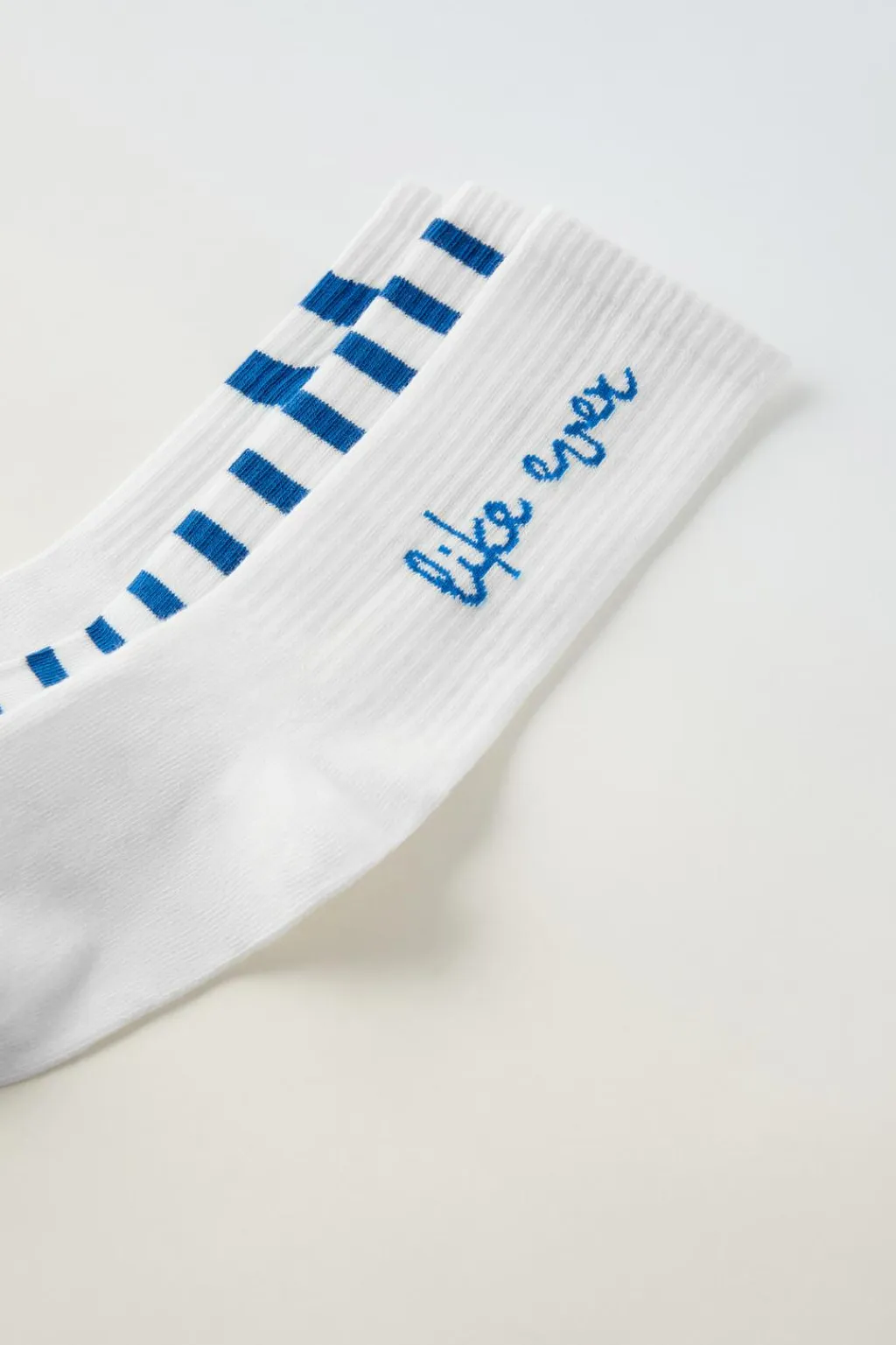 Pack de tres calcetines largos. Estampado rayas y texto.
