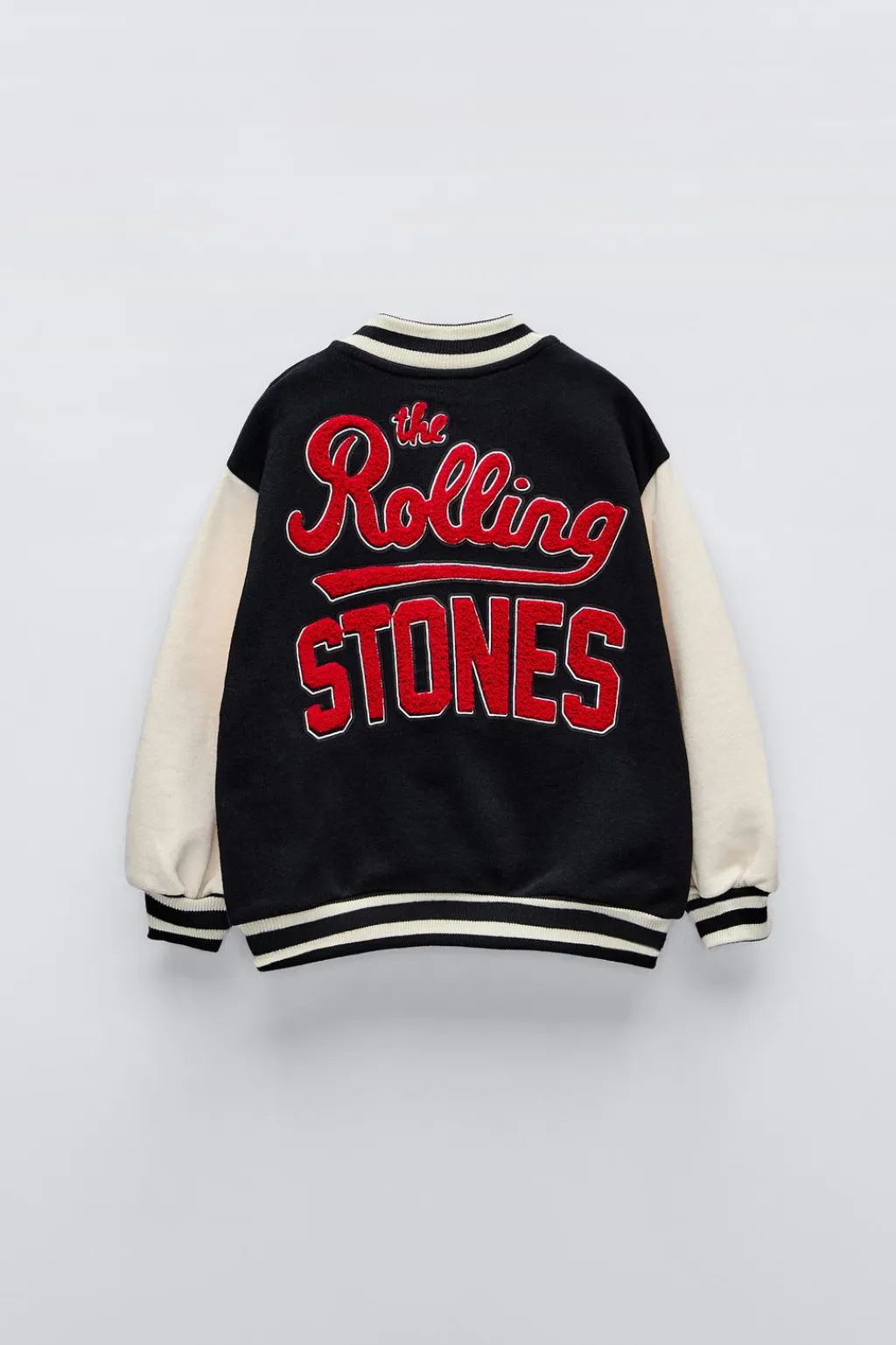Bomber con cuello redondo y manga larga a contraste. Acabados en rib.Cierre botones de tipo presión en delantero. Motivo bordado y estampado texto ROLLING STONES © en delantero y estampado texto con relieve de ROLLING STONES © en espalda.