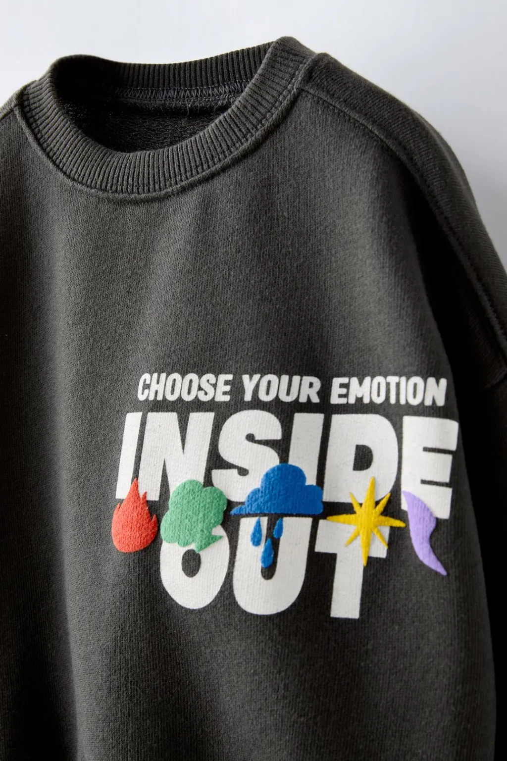 Sudadera con cuello redondo y manga larga. Acabados en rib. Estampado INSIDE OUT © DISNEY con relieve en pechera y espalda.