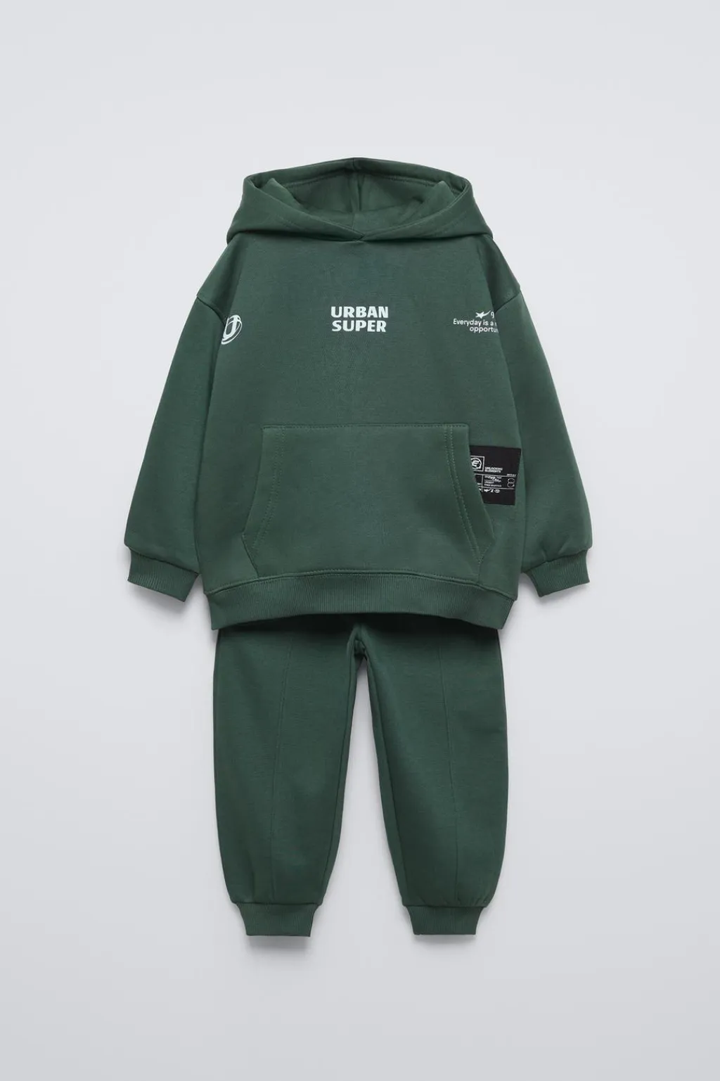 Conjunto dos piezas. Sudadera con capucha y manga larga, acabados en rib. Bolsillo tipo canguro en delantero y aplique etiqueta. Estampado texto en pechera. Pantalón tipo jogger con cinturilla elástica y cordones ajustables frontal. Bolsillos delanteros. Detalle nervio en delantero y aplique etiqueta en espalda. Bajo acabado en puño. Calidad interior cálida y suave.