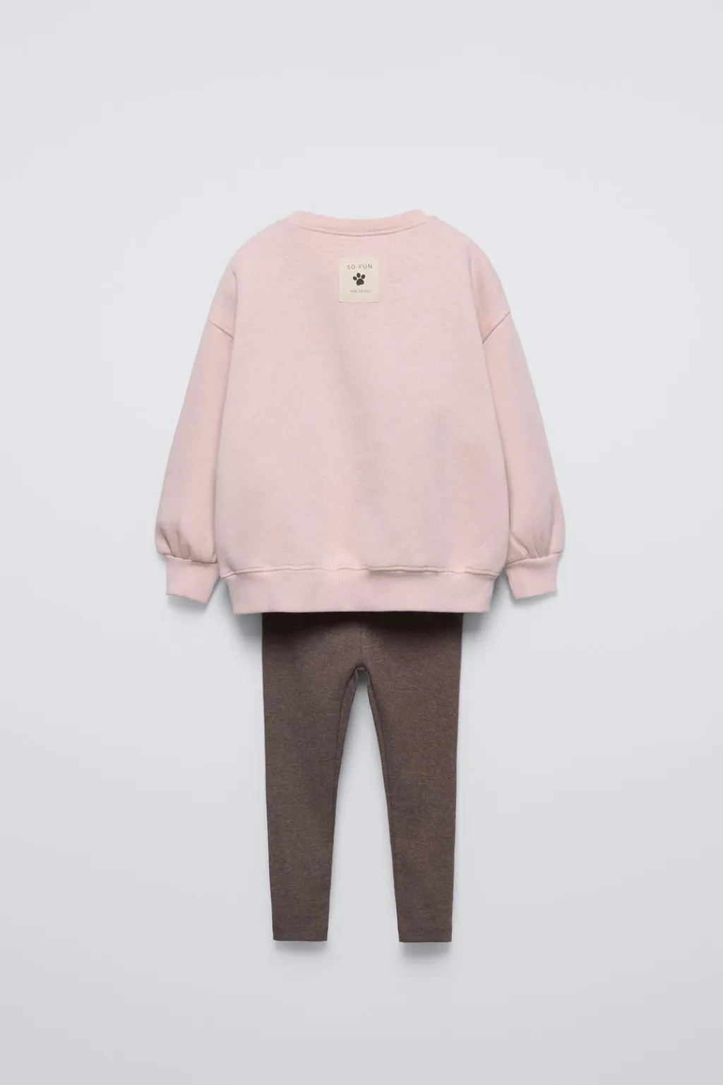 Conjunto de dos piezas. Sudadera con cuello redondo y manga larga. Acabados en rib. Estampado SKYE PAW PATROL ™ con detalle brillo y aplique etiqueta en espalda. Calidad perchada, cálida y suave. Legging con cinturilla elástica y aplique etiqueta en delantero.