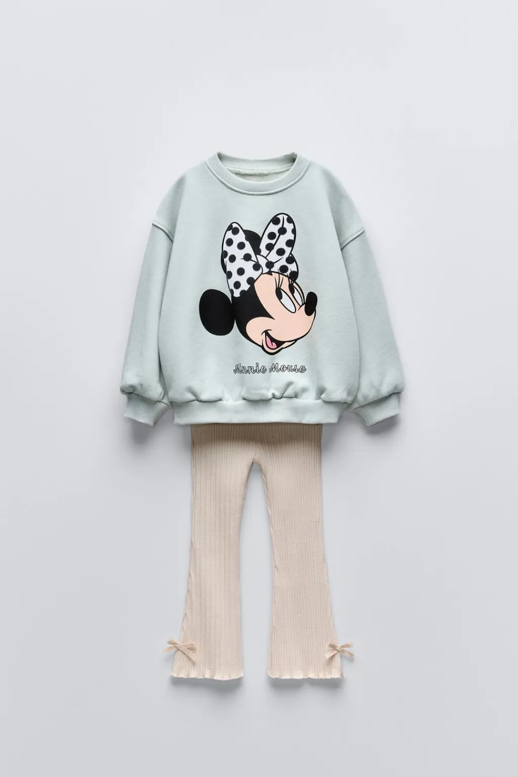 Conjunto de dos piezas. Sudadera de cuello redondo y manga larga. Estampado MINNIE MOUSE © DISNEY en delantero. Pantalón flare rib con cinturilla elástica y bajo acabado en rizo. Aplique lazos en bajo.