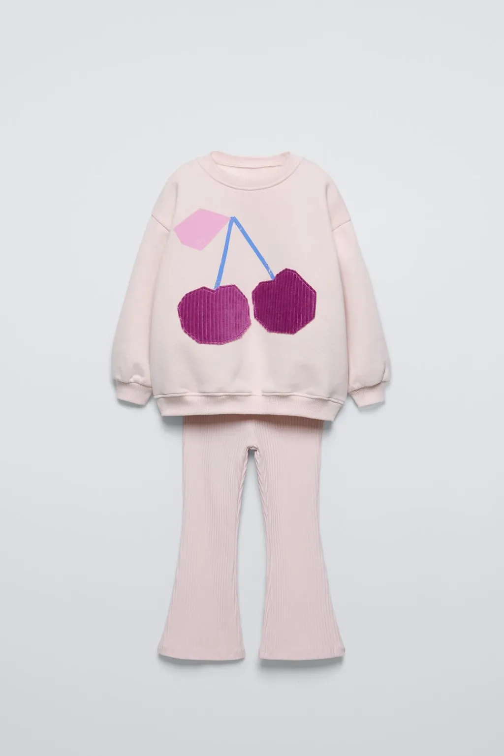 Conjunto dos piezas. Sudadera con cuello redondo y manga larga. Acabados en rib. Aplique en delantero con detalle pana. Legigng tipo flare con cinturilla elástica.