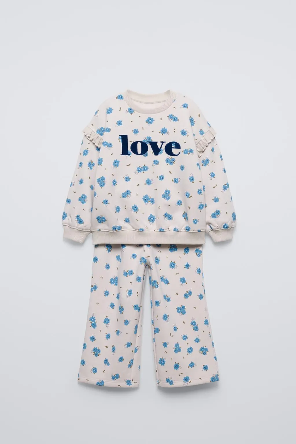 Conjunto dos piezas. Sudadera con cuello redondo y manga larga. Acabados en rib. Pantalón con cinturilla elástica. Estampado all over.