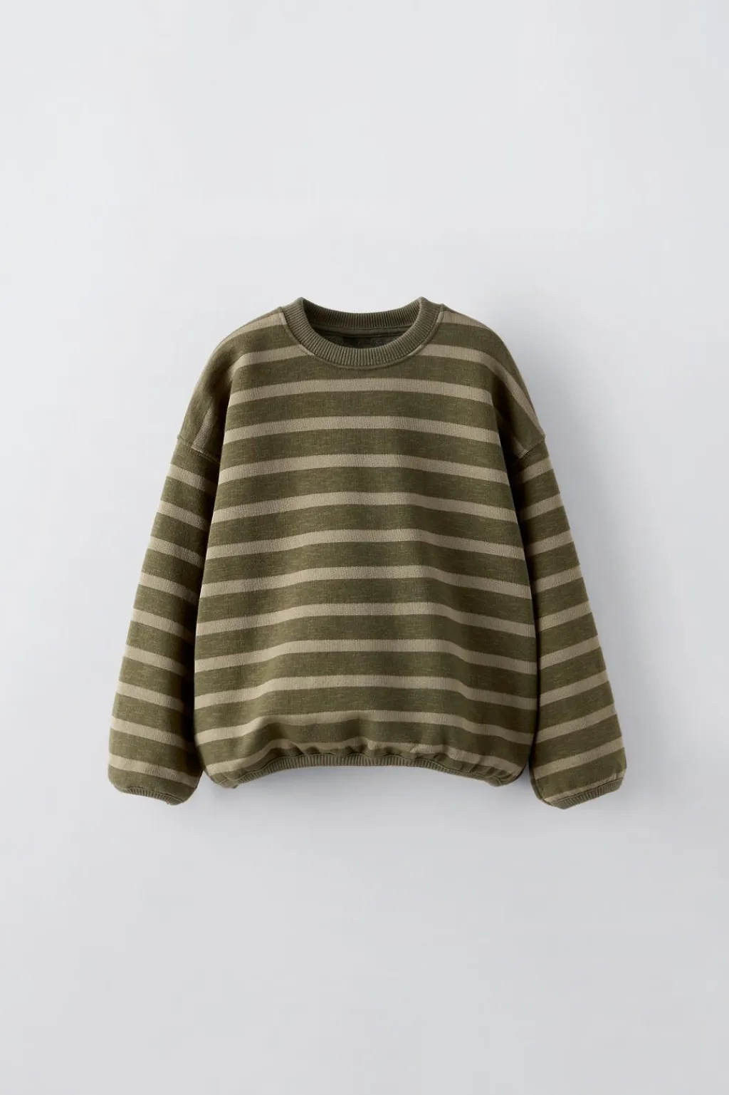 Sudadera con cuello redondo y manga larga. Acabados en goma. Estampado rayas.
