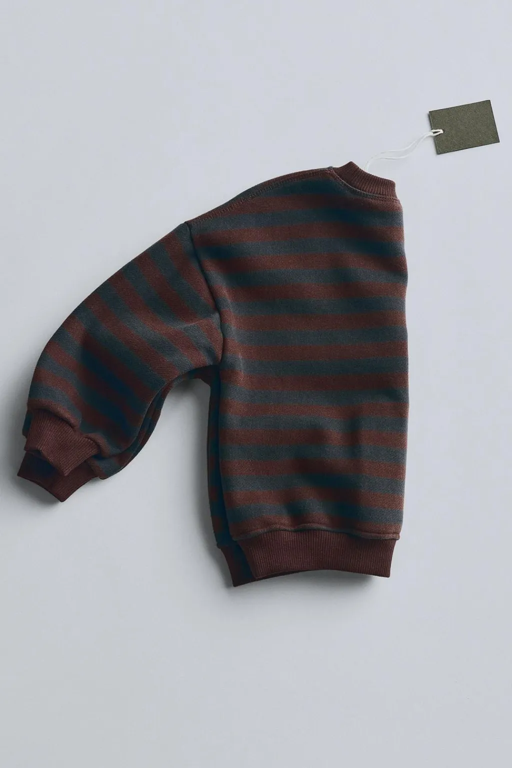 Sudadera con fit oversize confeccionada en tejido con algodón y estampado de rayas. El cuello esta rematado con tejido en rib igual que los puños y el bajo. La calidad del tejido en el interior es cálida y suave.