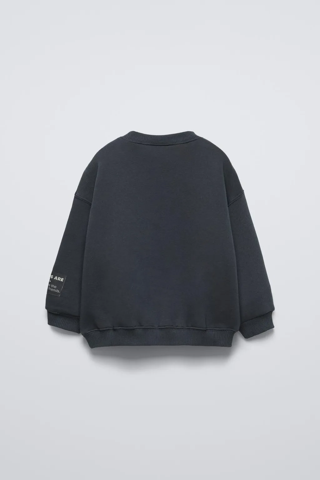Sudadera con cuello redondo y manga larga. Acabados en rib. Estampado dinosaurio en delantero con detalle flock. Aplique etiqueta en manga.