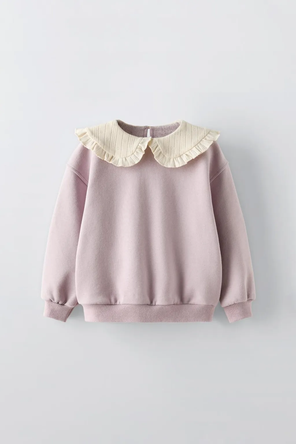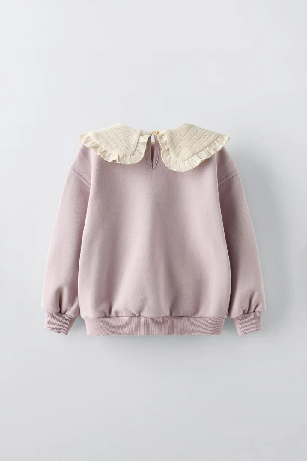 Sudadera con cuello bobo pointelle y manga larga. Acabados en rib. Cierre tipo lágrima con botón en espalda.