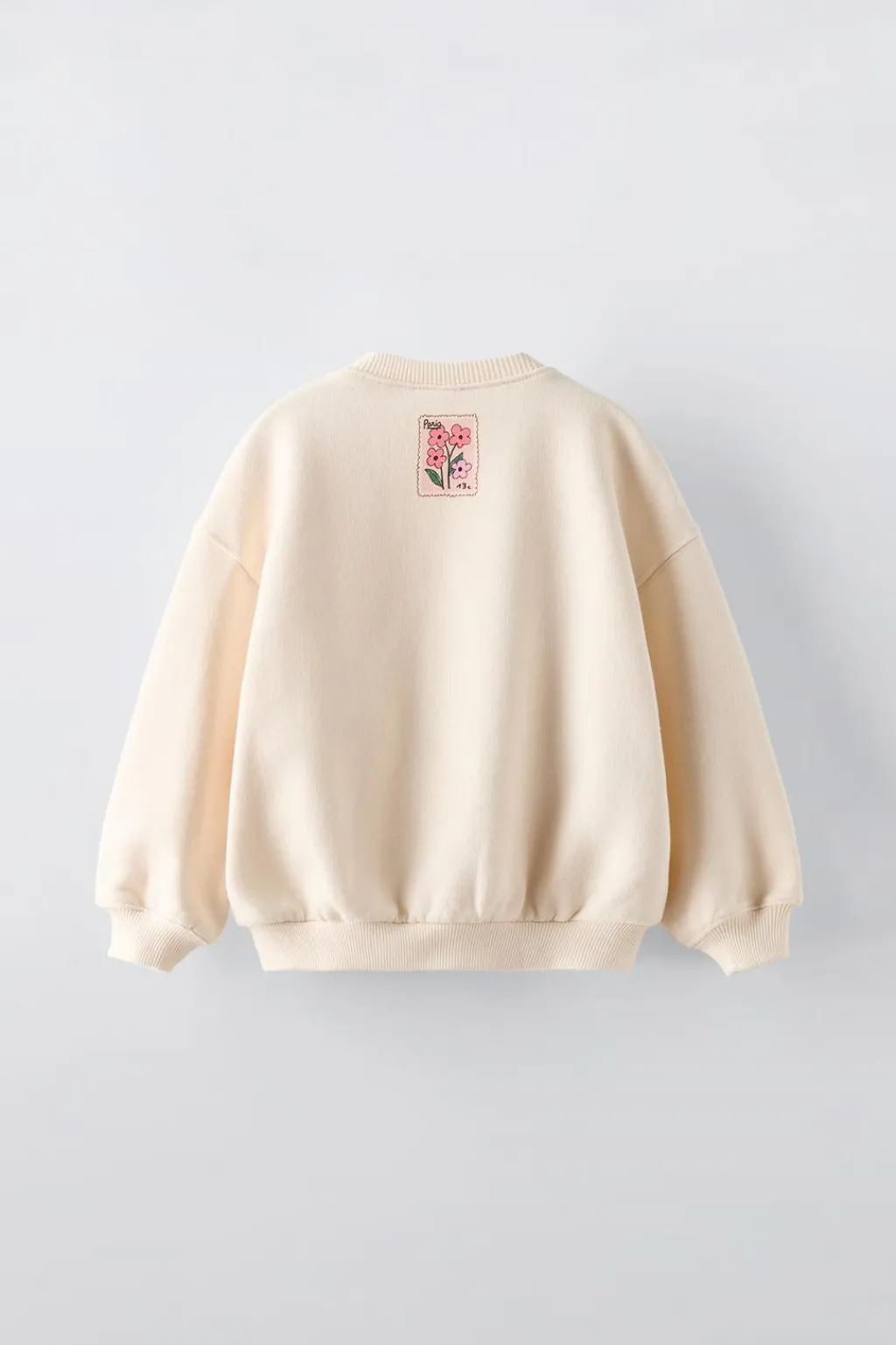 Sudadera con cuello redondo y manga larga. Estampado con aplique flores en delantero. Acabados en rib.