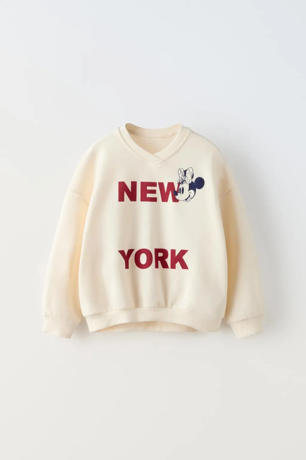Sudadera con cuello pico y manga larga. Estampado y bordado MINNIE © DISNEY en delantero y espalda. Acabados en rib.