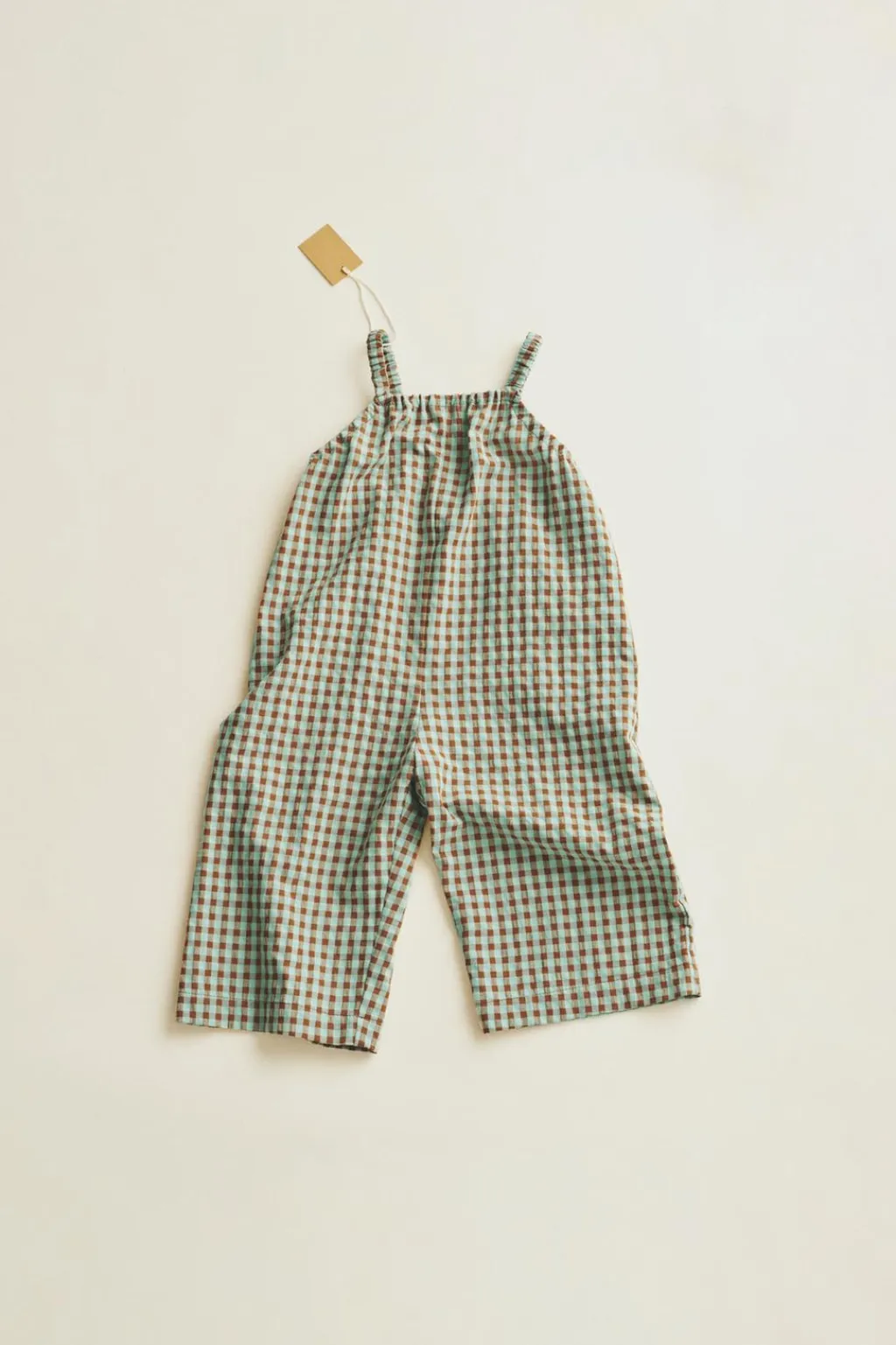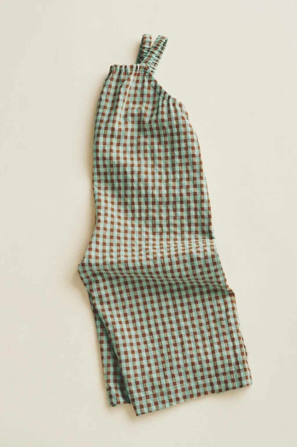 Este peto con un fit amplio está confeccionado en un tejido con estampado de cuadritos vichy. Las gomas en los tirantes y cuello le aportan comodidad.
