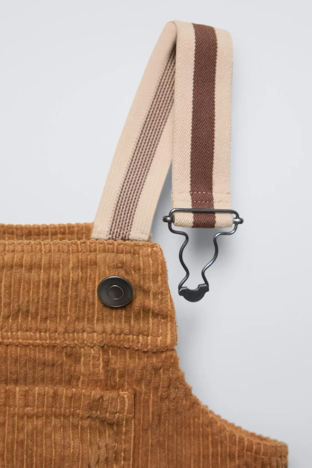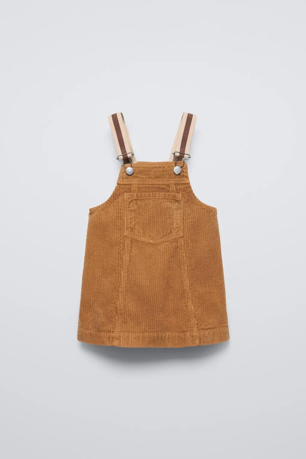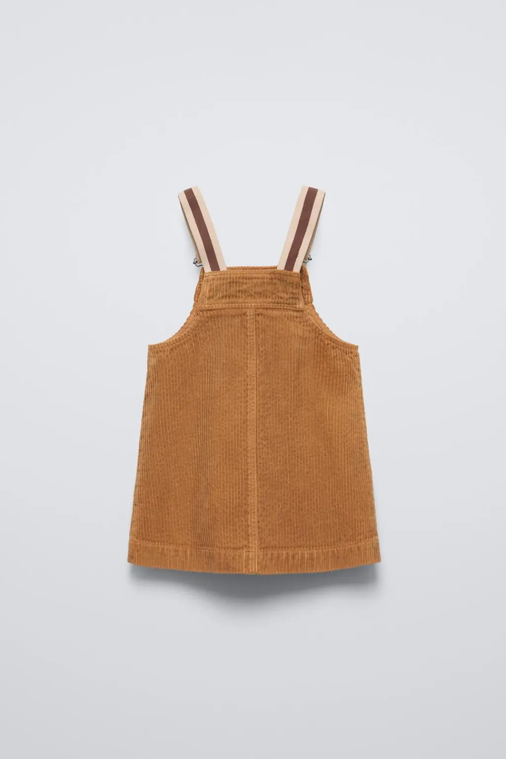 Pichi con cuello recto y tirantes con jardineras. Bolsillo tipo plastrón en delantero.