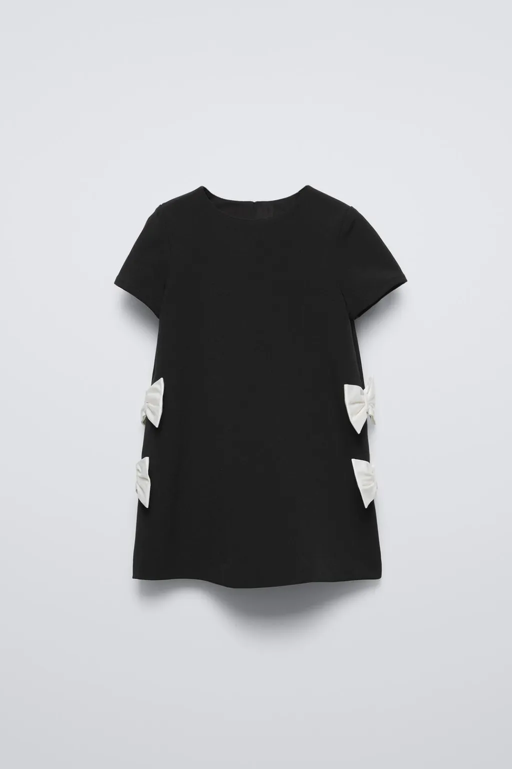 Vestido con cuello redondo y manga corta. Cierre tipo lágrima con botón en espalda. Aplique lazos laterales con color a contraste.