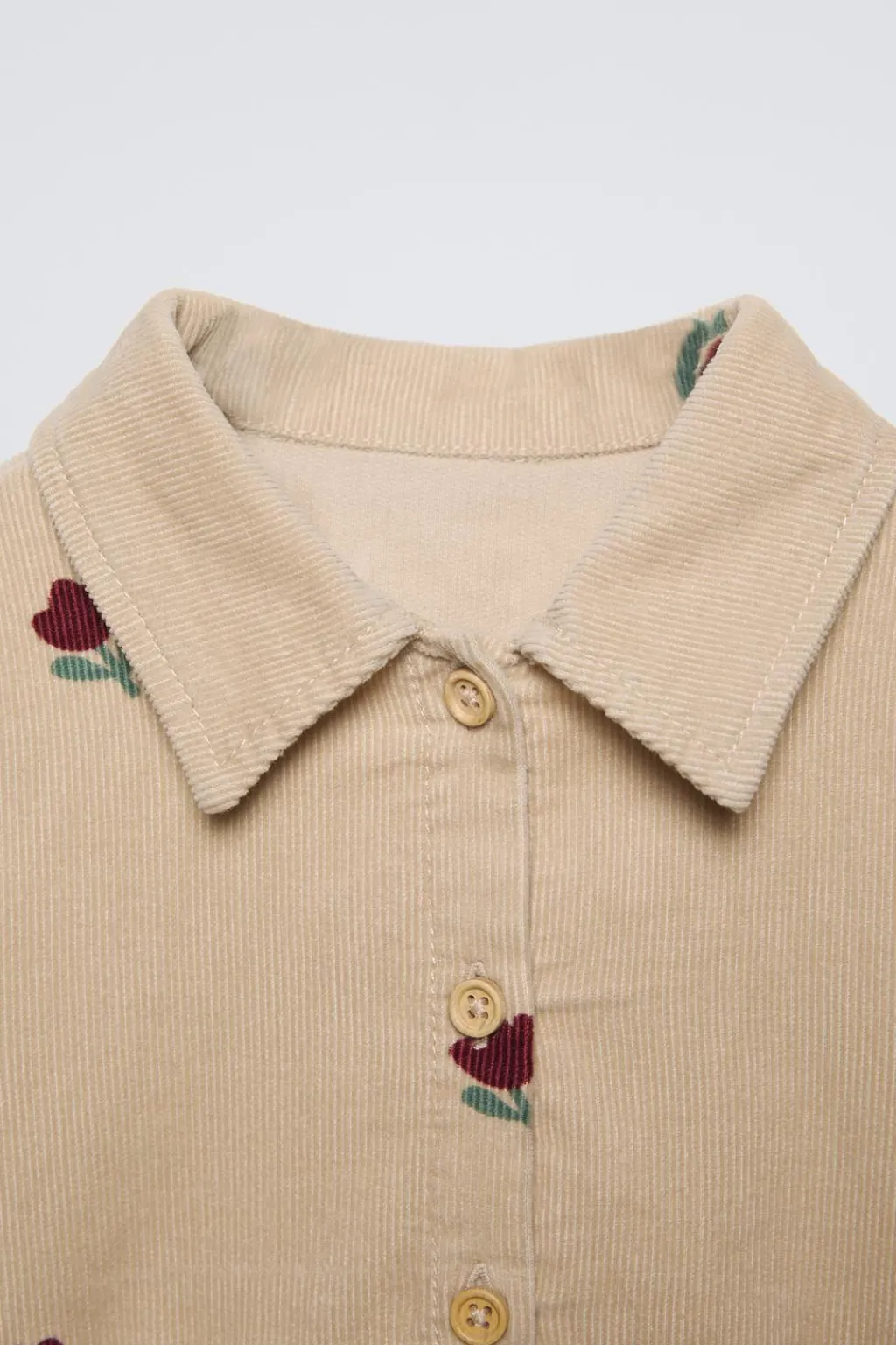 Vestido con cuello camisero y manga larga acabada en cierre botón. Cierre botonadura frontal en canesú. Detalle frunces en cintura.