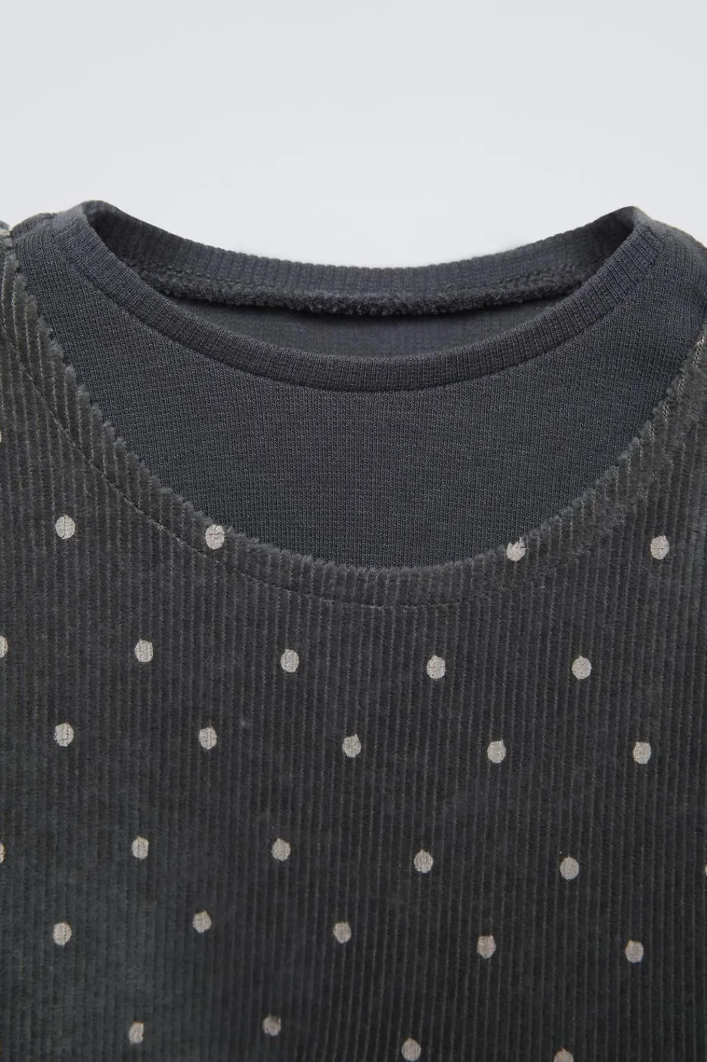 Pichi con cuello redondo y manga sisa. Camiseta interior con cuello redondo y manga larga acabada en rizo.