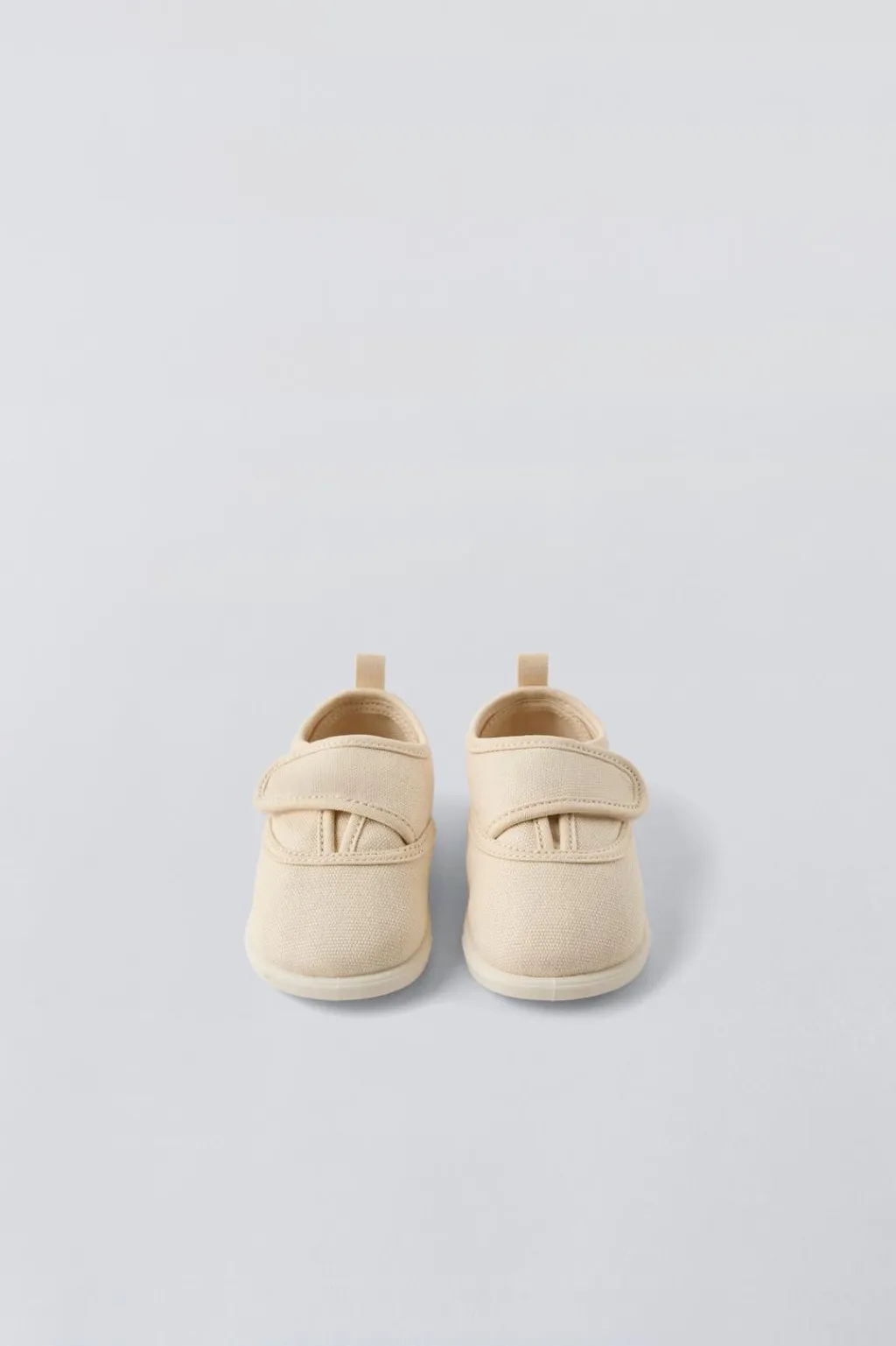 Zapatilla tipo bamba 100% algodón. Cierre mediante tira adherente. Plantilla flexible y forro interior 100% algodón. Tirador trasero para facilitar el calce. Suela de goma.