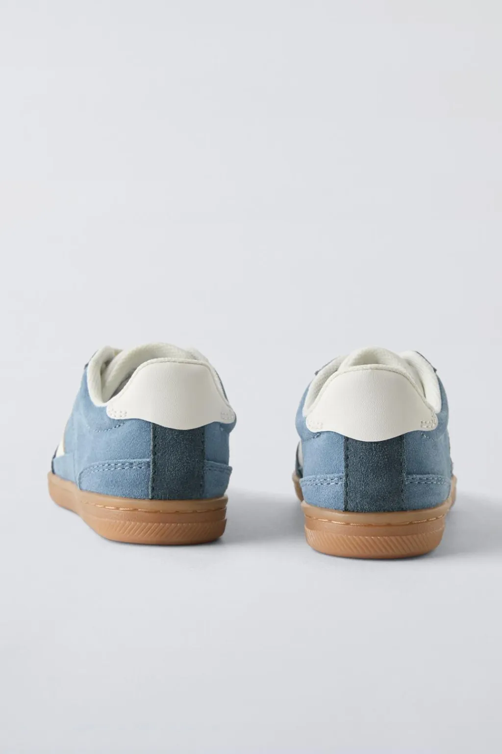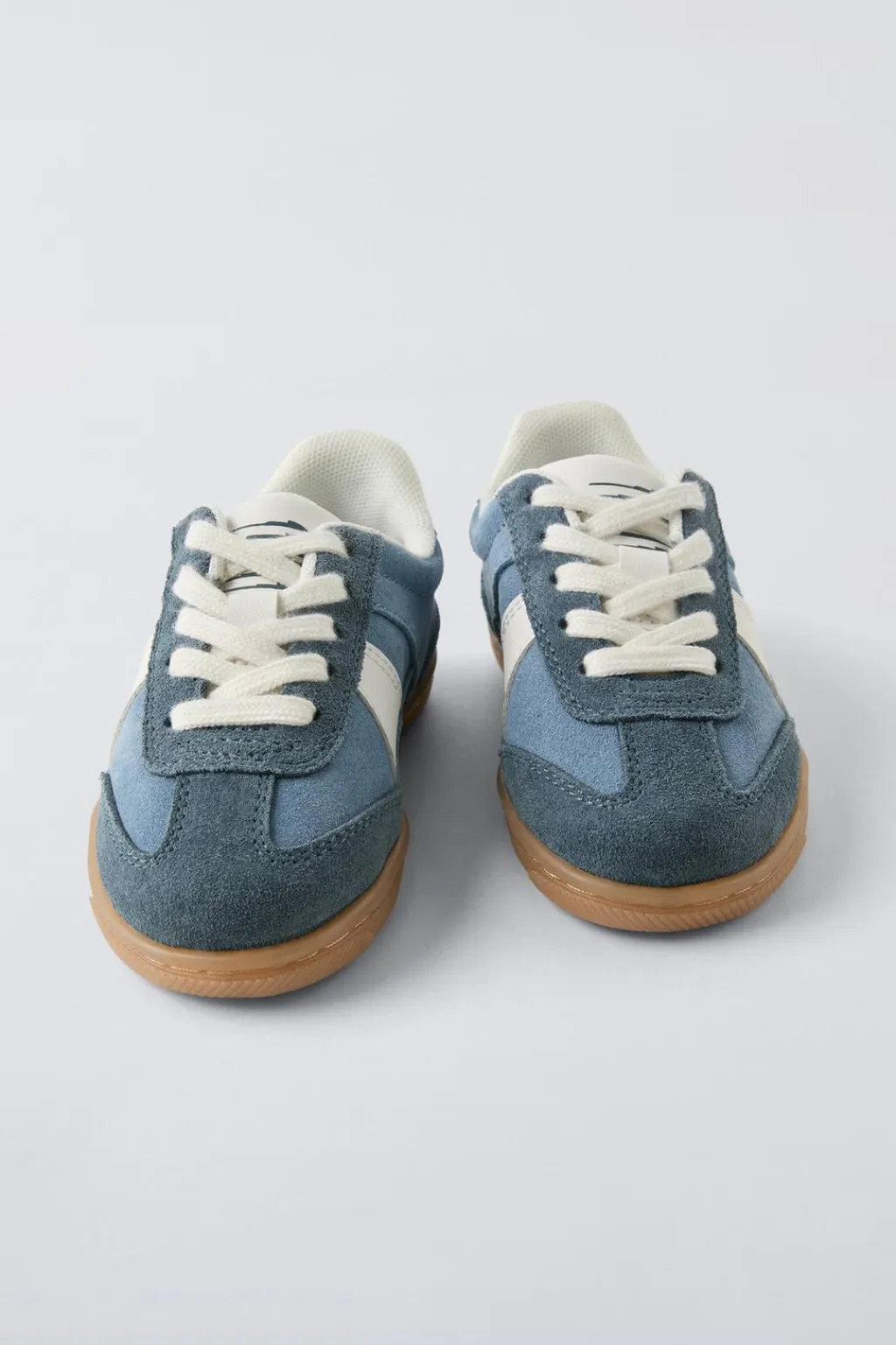Zapatilla tipo bamba de piel vacuno acabado en serraje. Cierre mediante cordones ajustables. Plantilla flexible. Suela de goma en contraste de color.