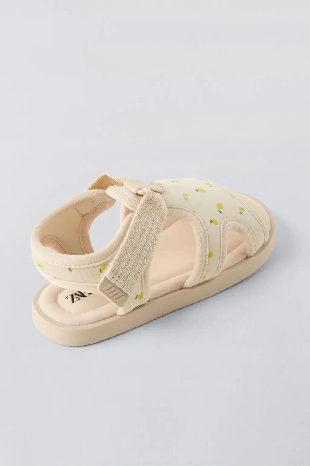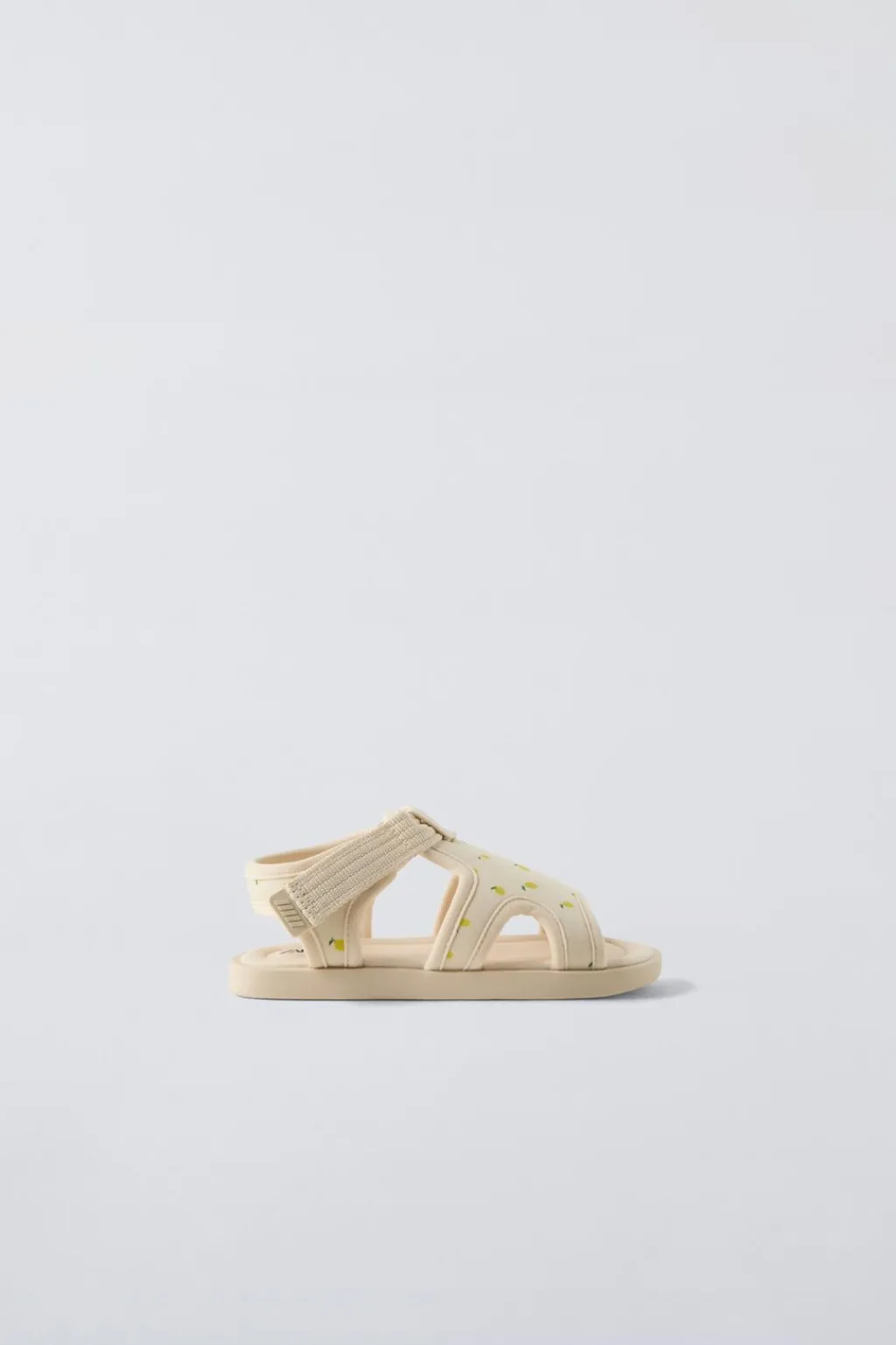 Sandalia con estampado limones. Cierre mediante tira adherente en el lateral. Suela de goma.