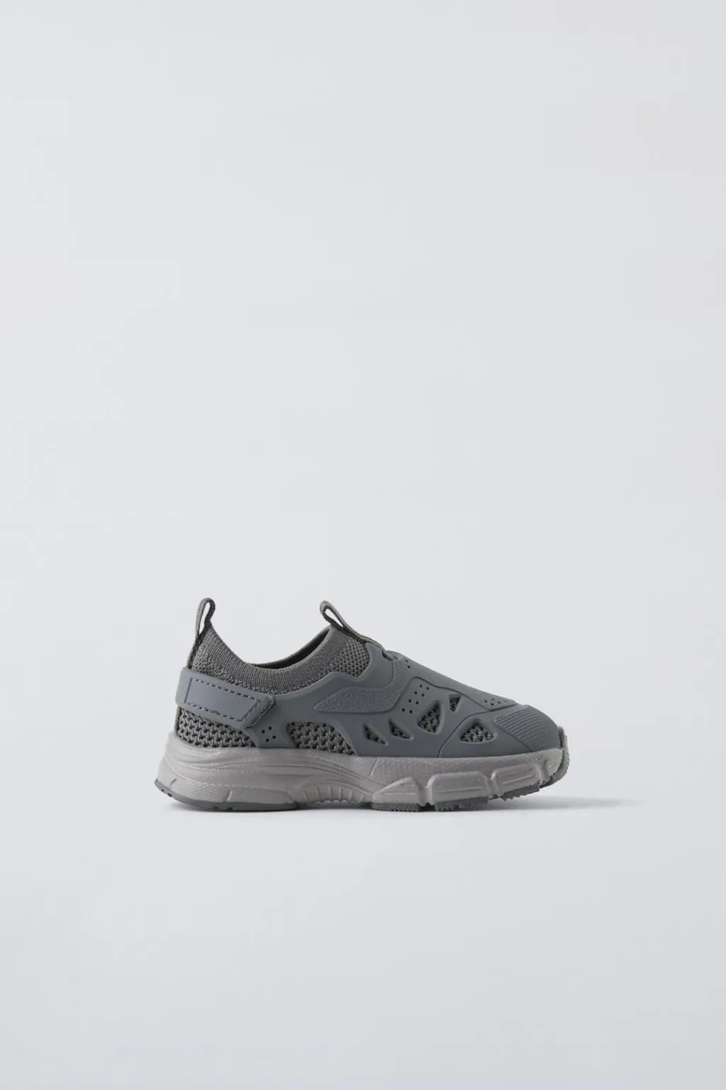 Zapatilla deportiva tipo calcetín engomada. Con elástico para mejor sujeción. Plantilla flexible. Tirador delantero para facilitar el calce. Suela de goma en volumen en contraste de color.