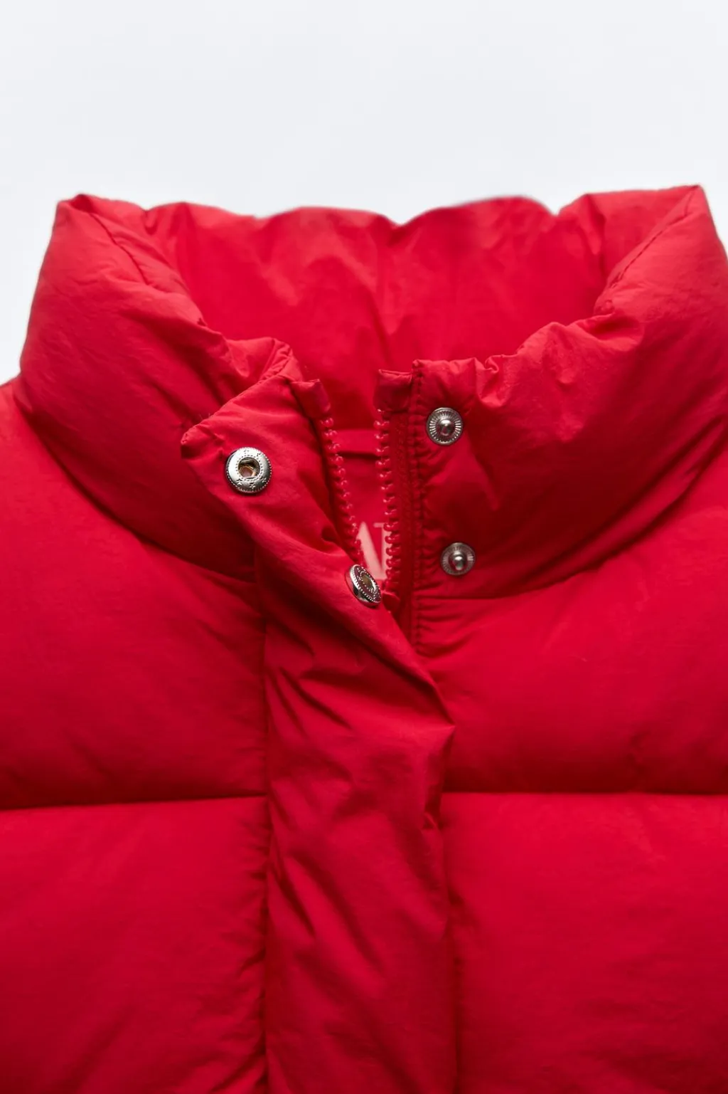 Chaleco con cuello subido y manga sisa. Cierre frontal con botones tipo presión ocultos y cremallera. Bolsillos en delantero.