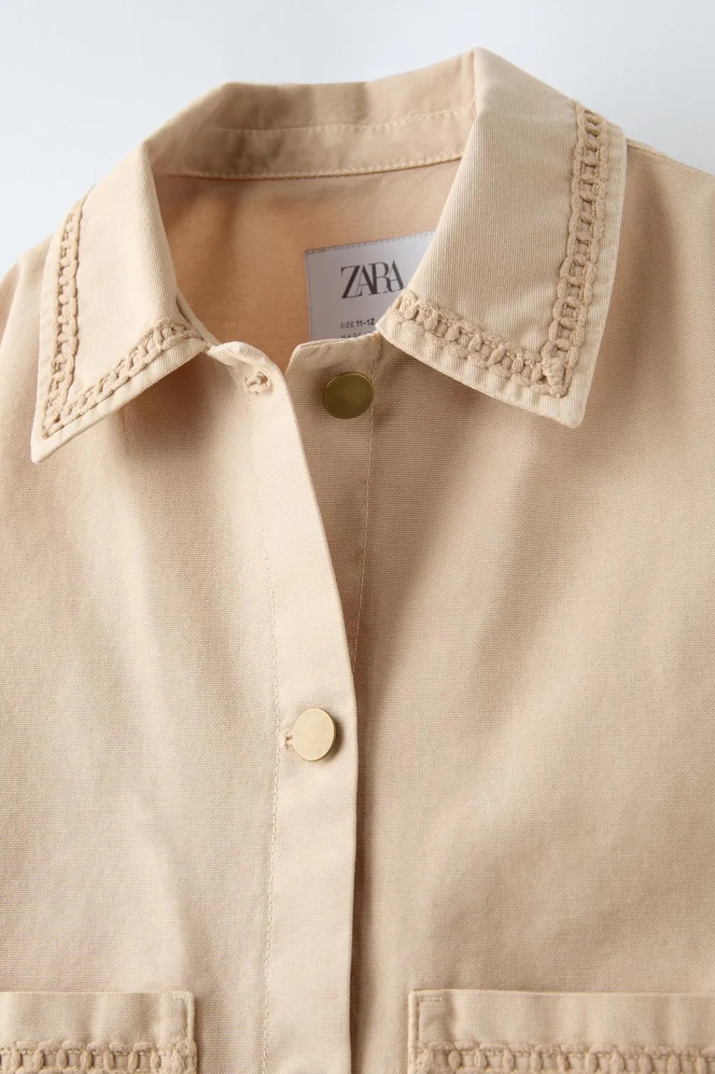 Sobrecamisa con cuello camisero y manga larga. Cierre con botonadura frontal. Bolsillos tipo plastrón en delantero. Detalle bordados en color a tono.