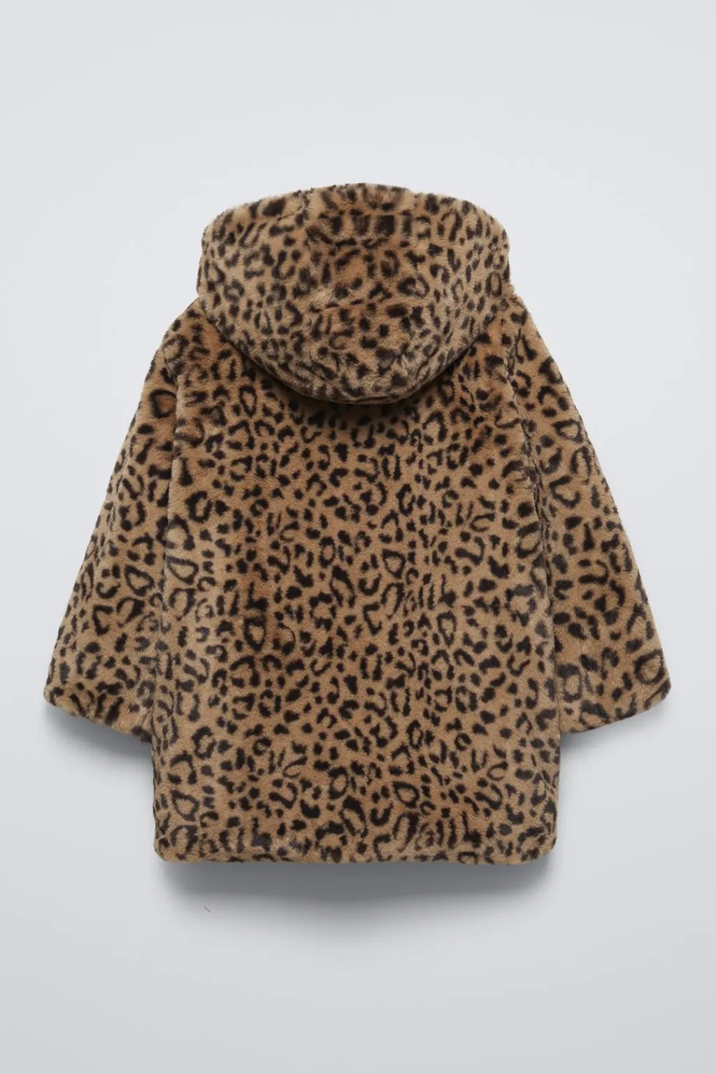 Abrigo con capucha y manga larga. Bolsillos en delantero. Estampado animal print y efecto pelo.