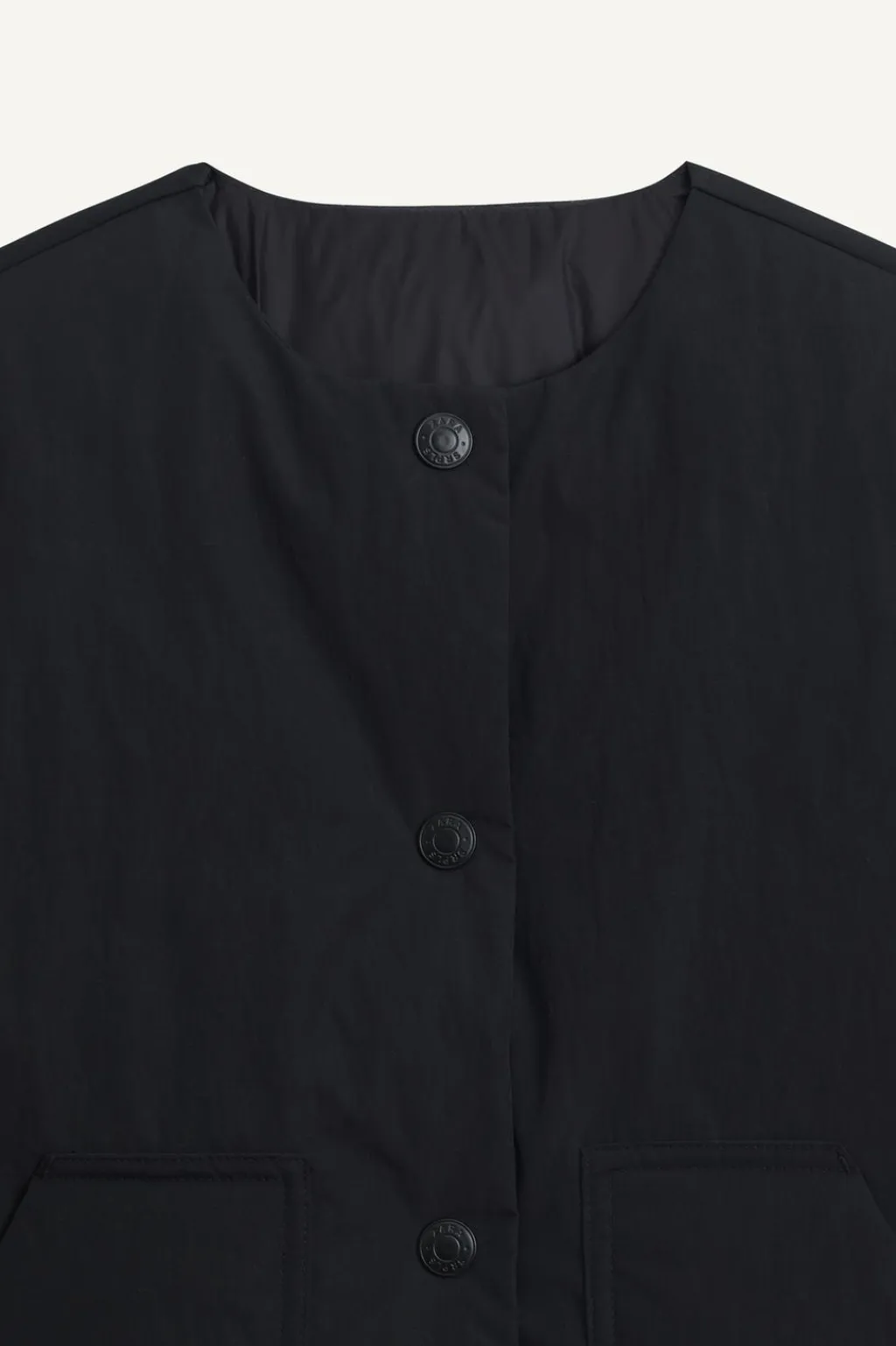 Plumífero de pluma plumón, con cuello redondo y manga larga. Aplique bufanda extraíble en cuello. Cierre botonadura frontal con botones de tipo presión. Bolsillos de tipo plastrón en delantero y en espalda. Forro interior combinado a tono.