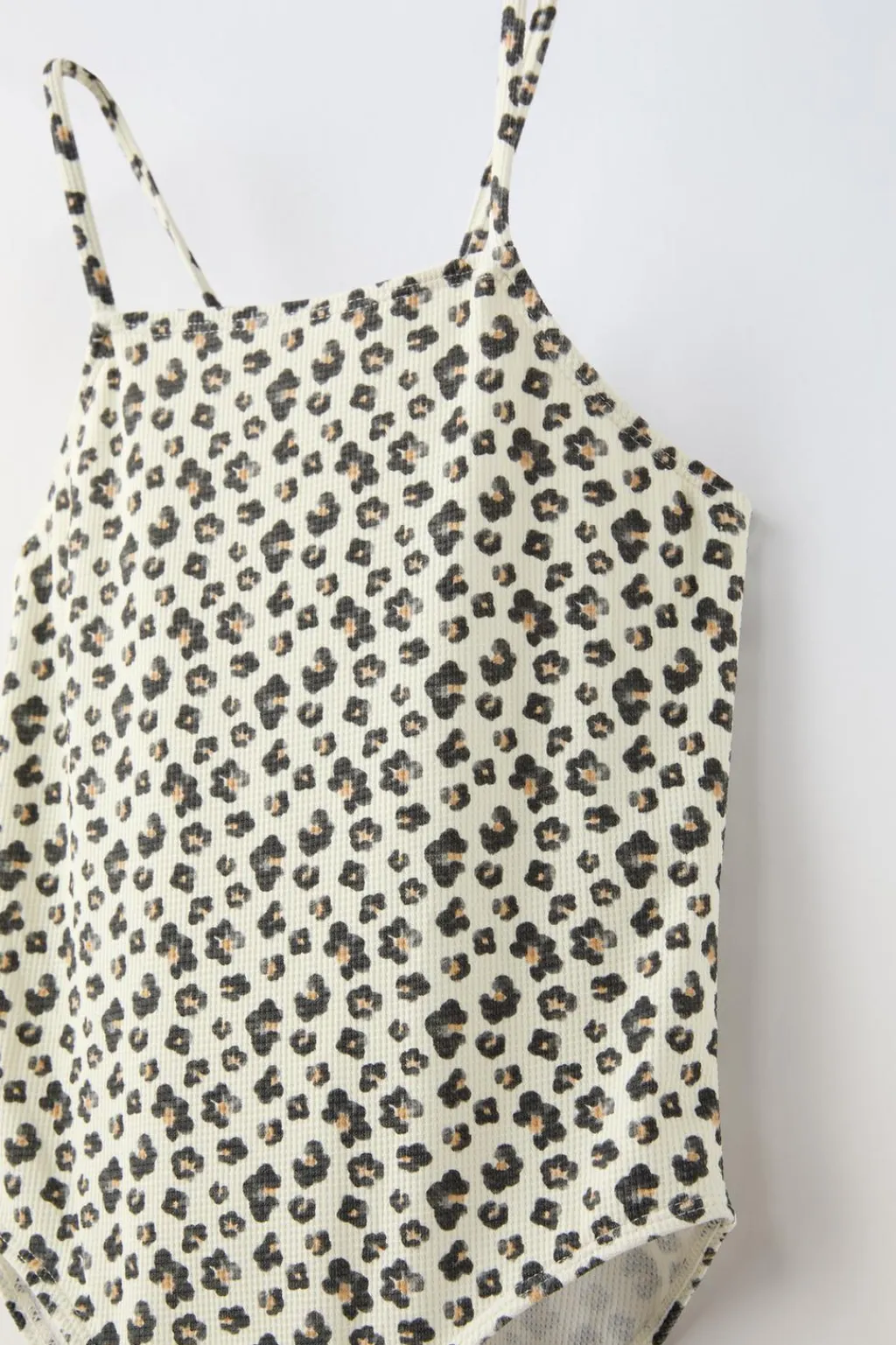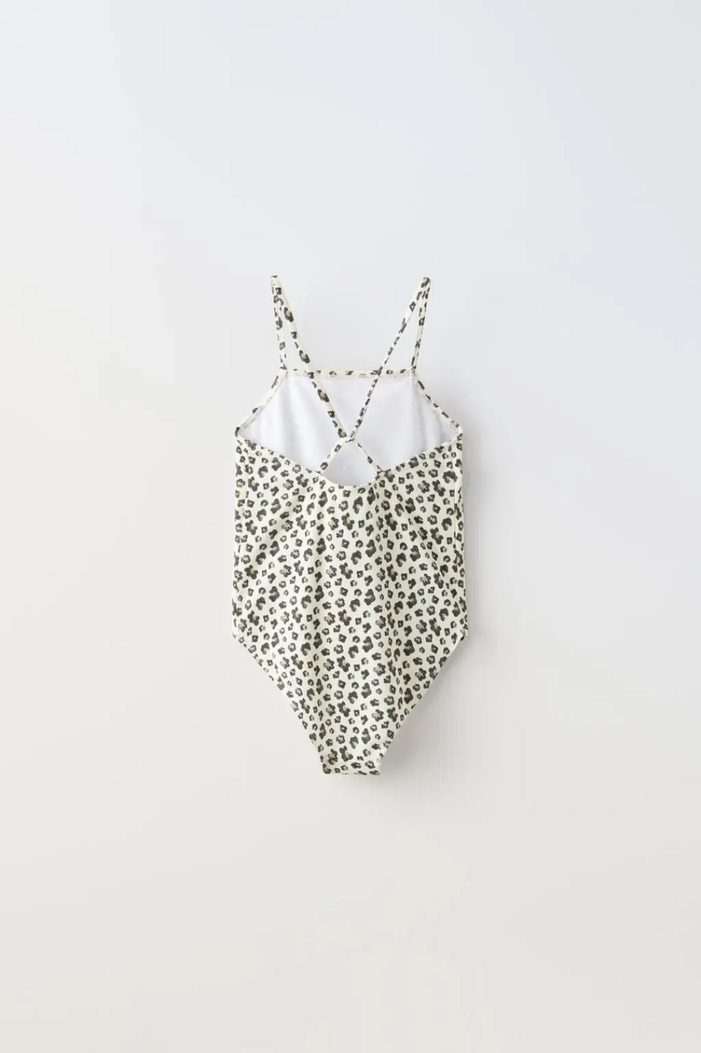 Bañador con cuello redondo y tirantes cruzados en espalda con detalle cut out. Estampado animal print.