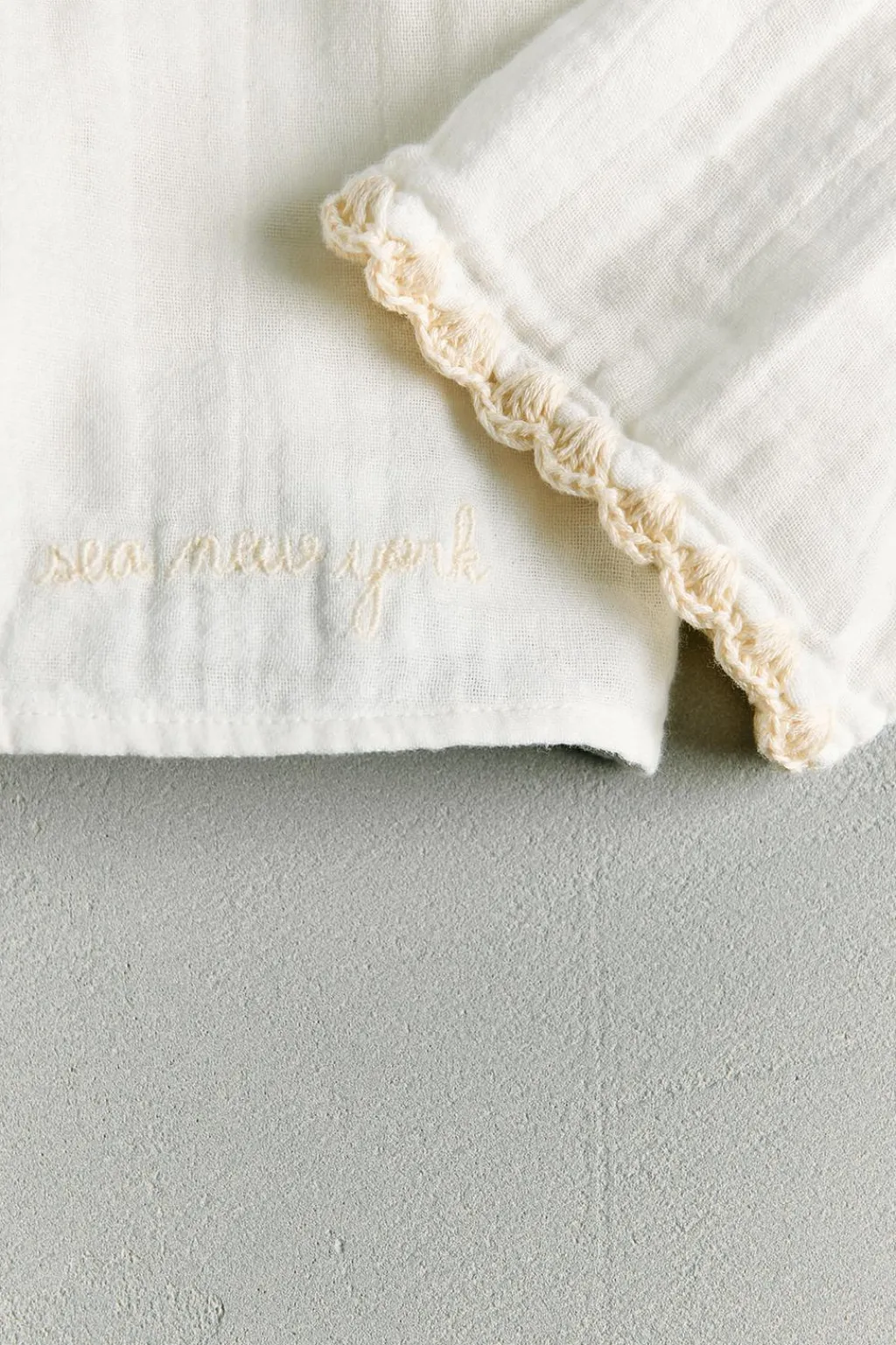 Cuello bobo a contraste con estampado floral. Cierre frontal con botones forrados en crochet. Acabados de mangas y cuello en punto con color a contraste. Detalle SEA NEW YORK bordado en el bajo.