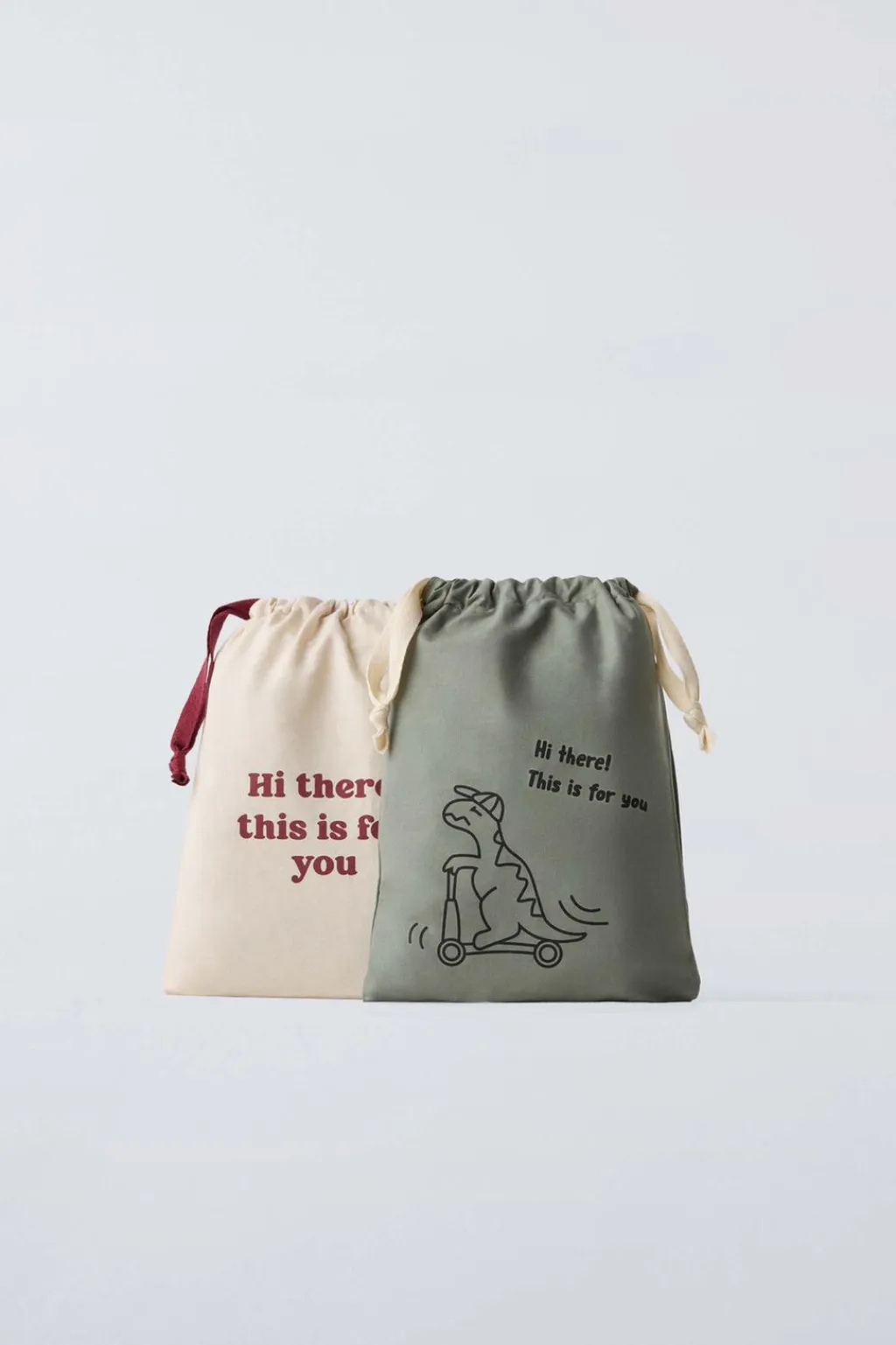 Pack de dos bolsas para guardar regalos. Cierre mediante cordones fruncidos.