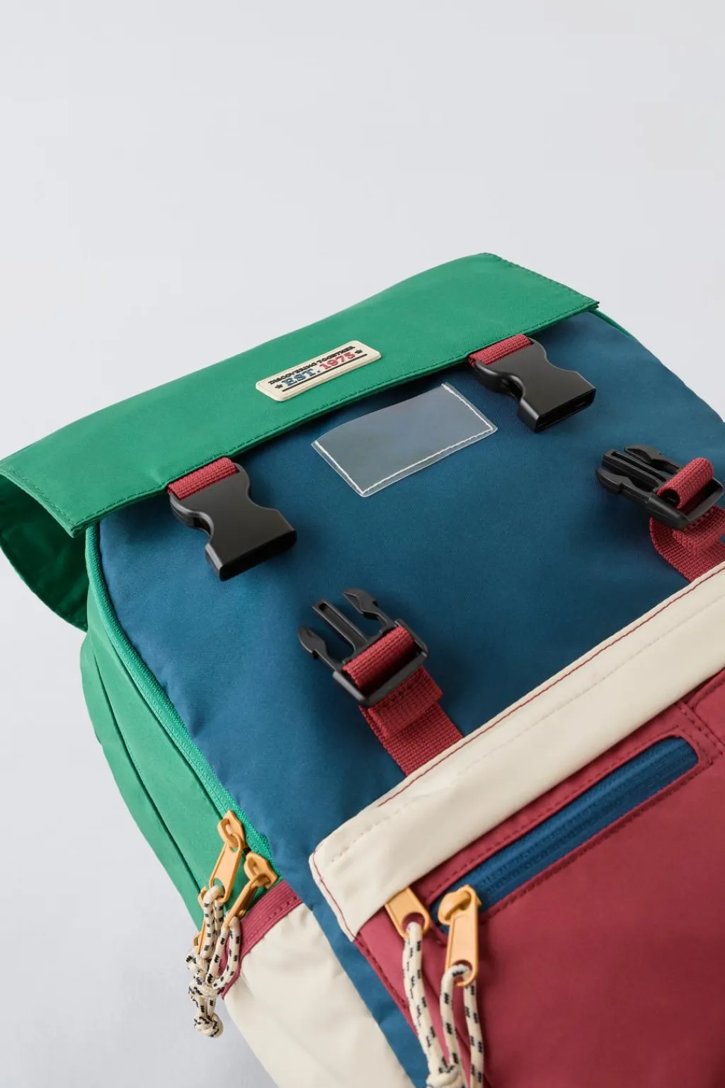 Mochila multicolor. Doble compartimento principal con cierre mediante cremallera y solapa con doble tirado deportivo.Cuenta con bolsillos laterales y dos bolsillos frontales con cierre mediante cremallera.En su interior, cuenta con un bolsillo sin cierre. Asa de mano y dos asas de hombro ajustables. Cuenta con una tira trasera para mejorar la sujeción en el carro de ruedas.