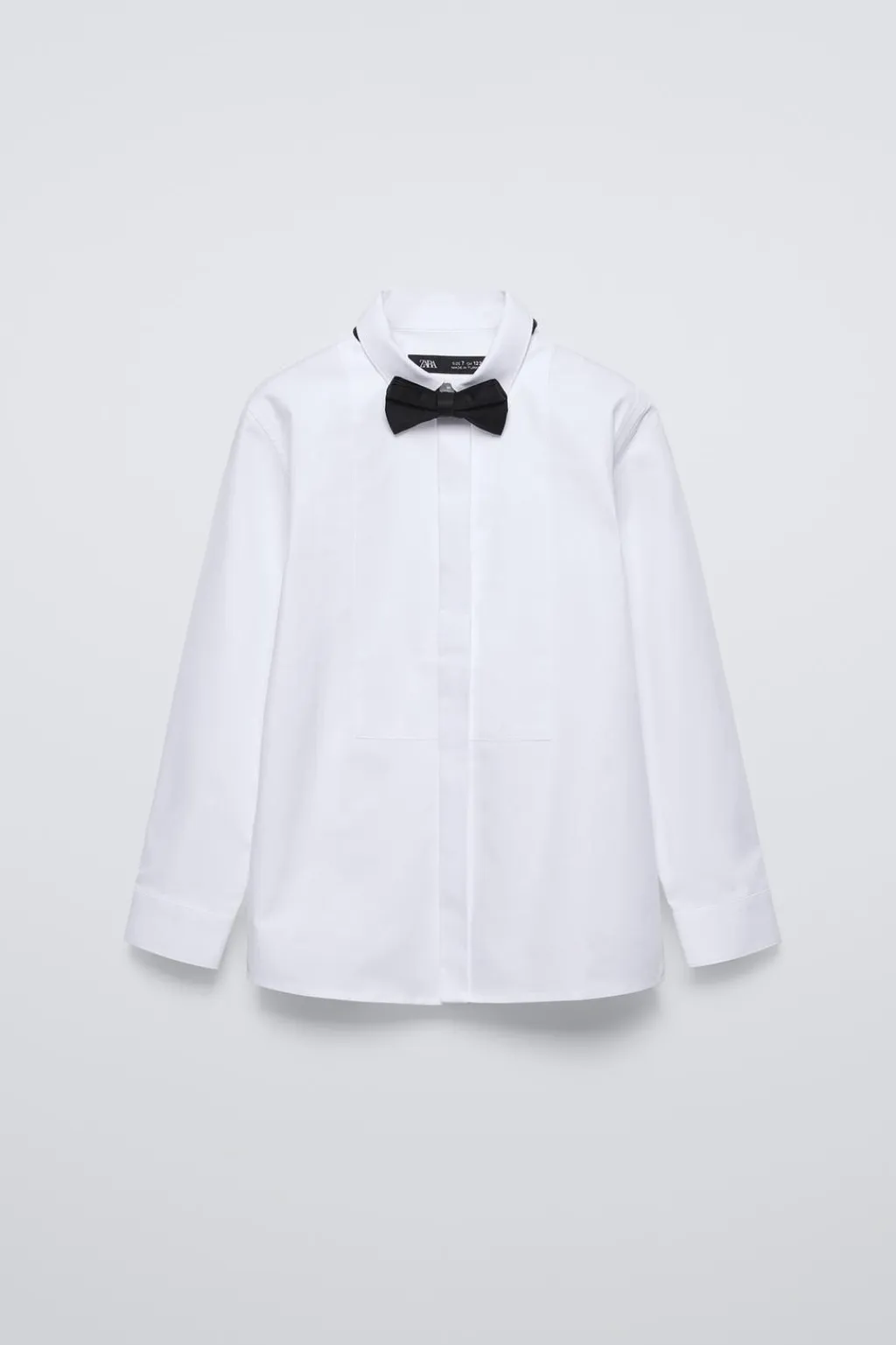 Camisa con cuello camisero y manga larga acabada en cierre botones. Aplique pajarita satinada ajustable extraíble. Cierre botonadura frontal oculta por solapa.