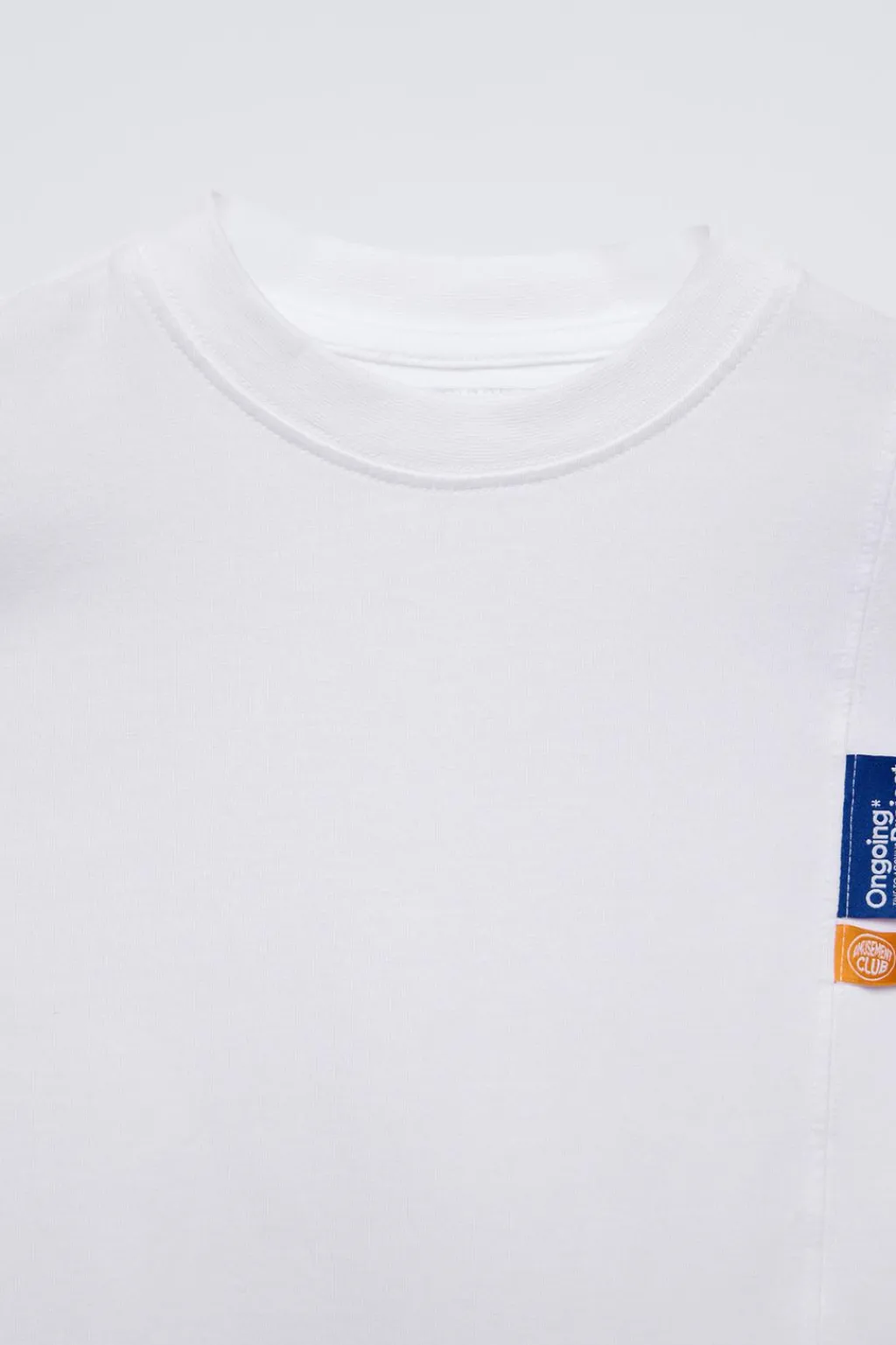 Camiseta con cuello redondo y manga larga. Aplique etiqueta en pechera y estampado en espalda.