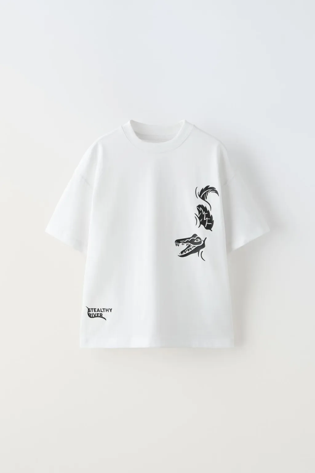 Camiseta con cuello redondo y manga corta. Estampado motivo cocodrilo engomado en delantero.