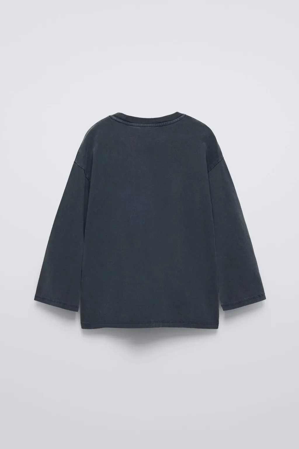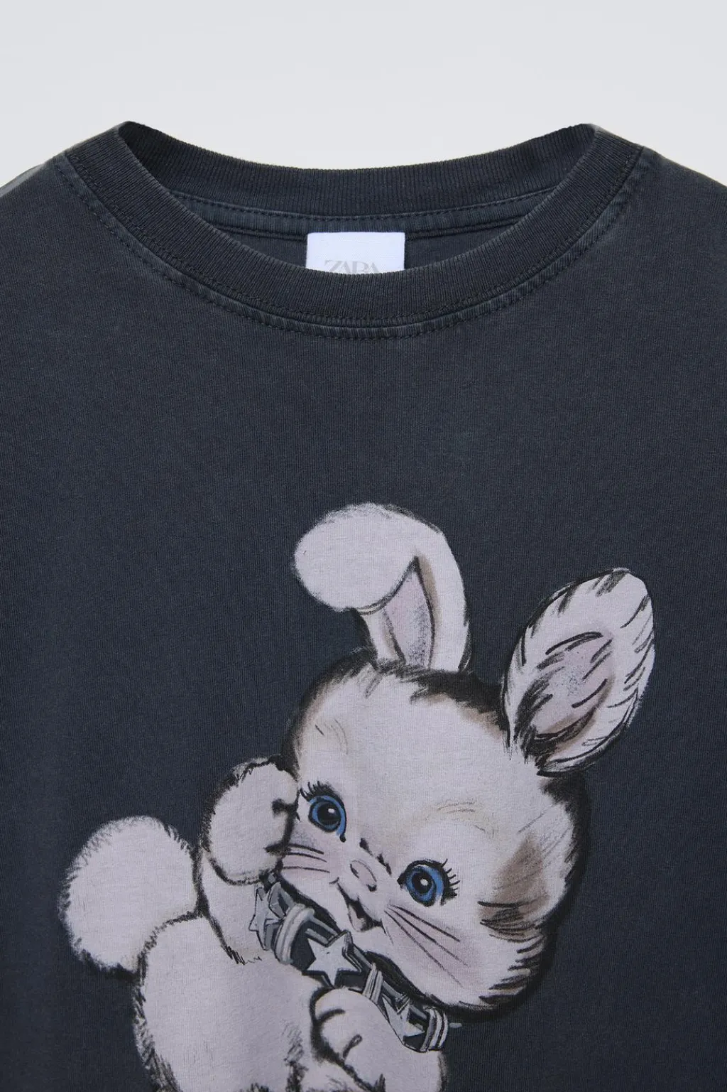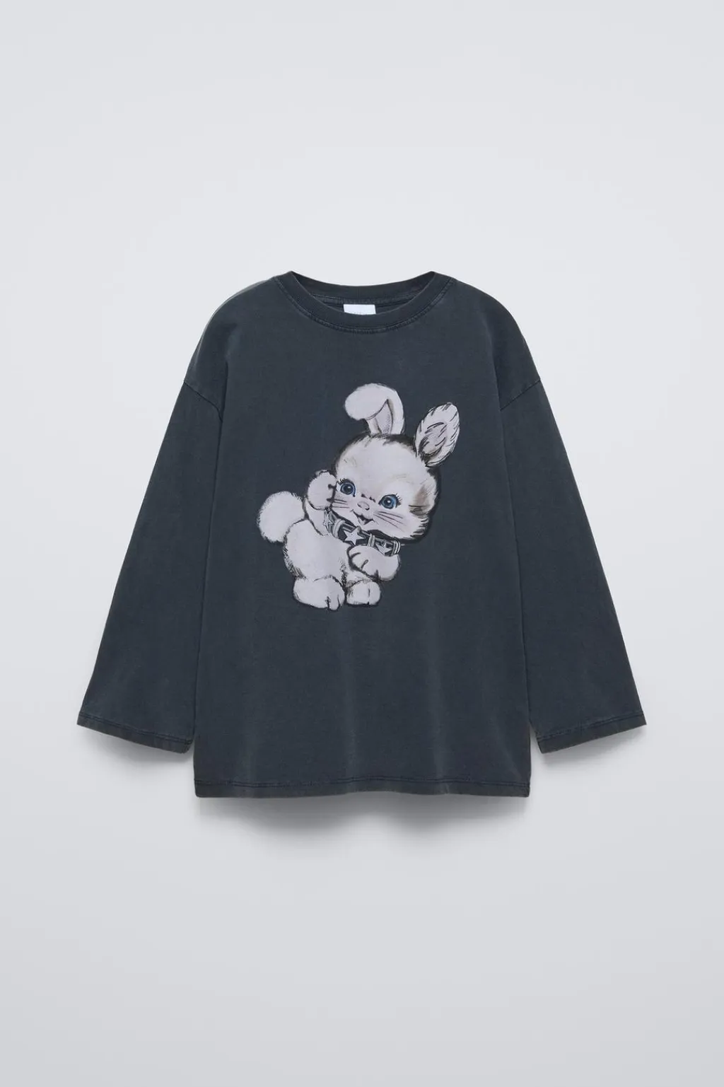 Camiseta con cuello redondo y manga larga. Estampado conejo en delantero.