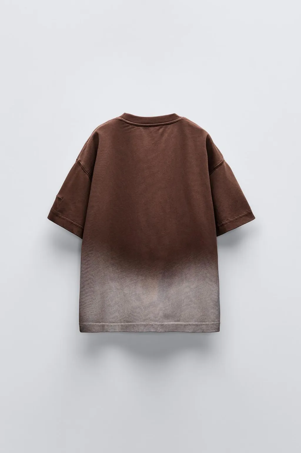 Está confeccionada en un tejido de algodón con un patrón ancho. Tiene un estampado especial deep dye y un texto en el delantero. El cuello está rematado con un vivo en rib. Como detalle tiene bordado a tono el logo TN en la manga.