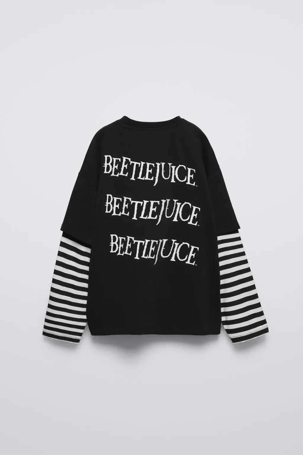 Camiseta con cuello redondo y doble manga de rayas. Estampado BEETLEJUICE ™ con relieve en pechera y espalda.