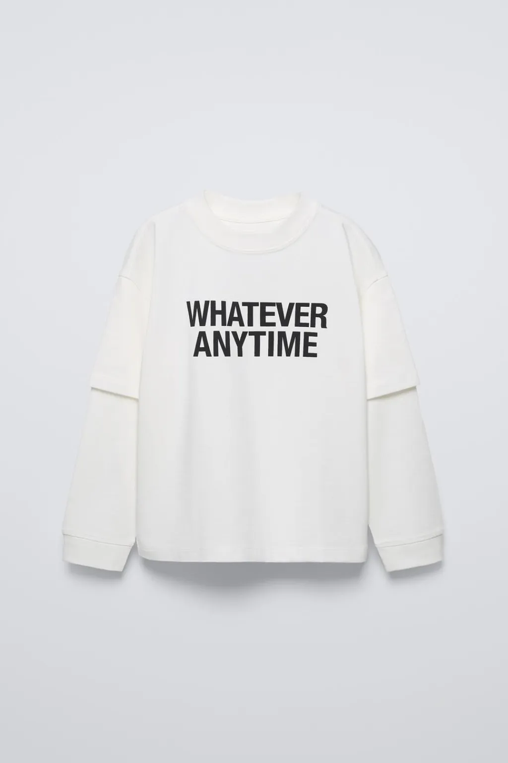 Camiseta con cuello redondo y doble manga acabada en puño. Estampado texto en delantero y aplique etiqueta en espalda.