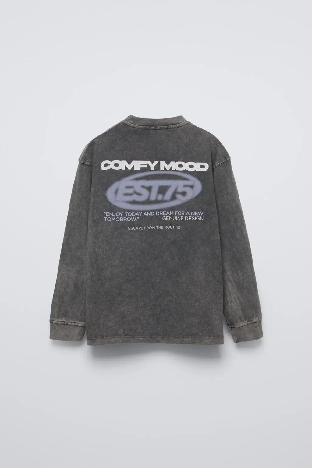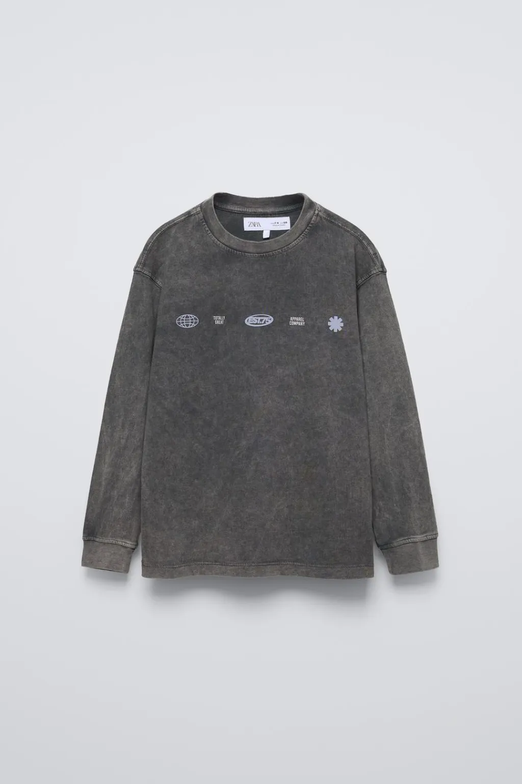 Camiseta con cuello redondo y manga larga acabada en goma. Estampado en delantero y espalda.