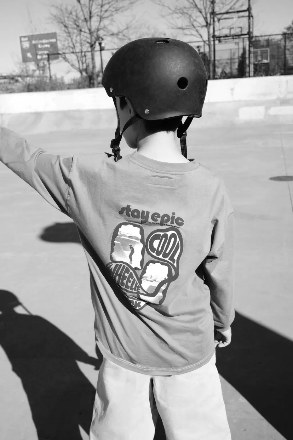 Camiseta con cuello redondo y manga larga acabada en puño. Estampado en pechera y espalda con detalle relieve.