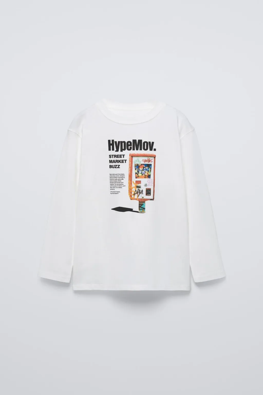 Camiseta con cuello redondo y manga larga. Estampado street en delantero y espalda.