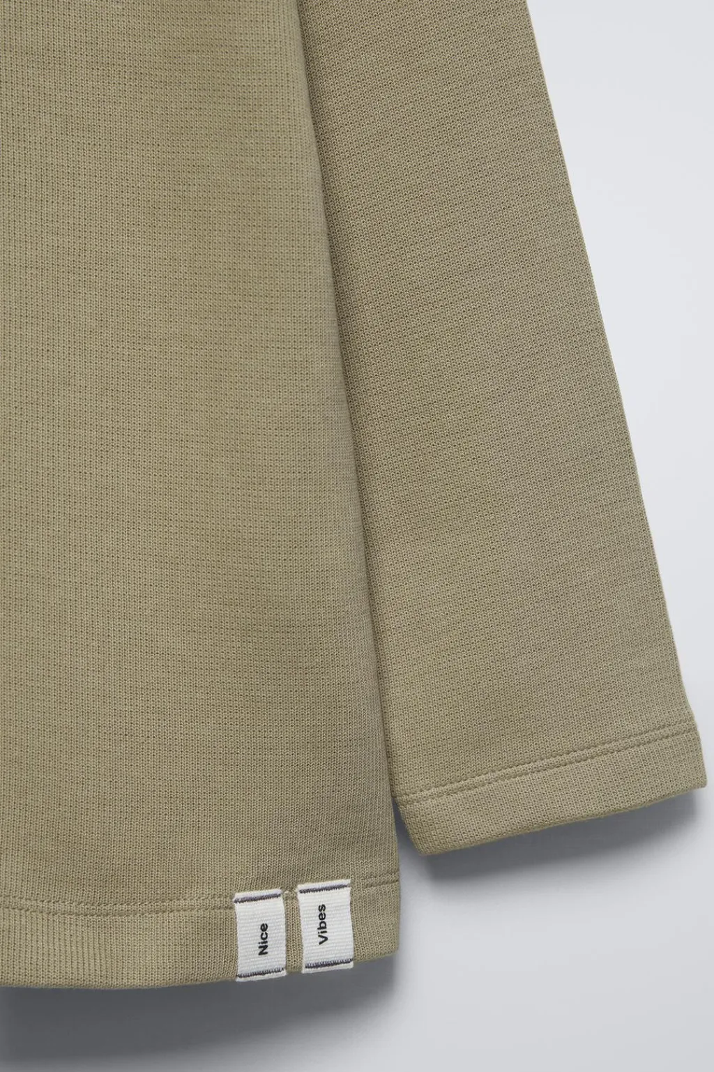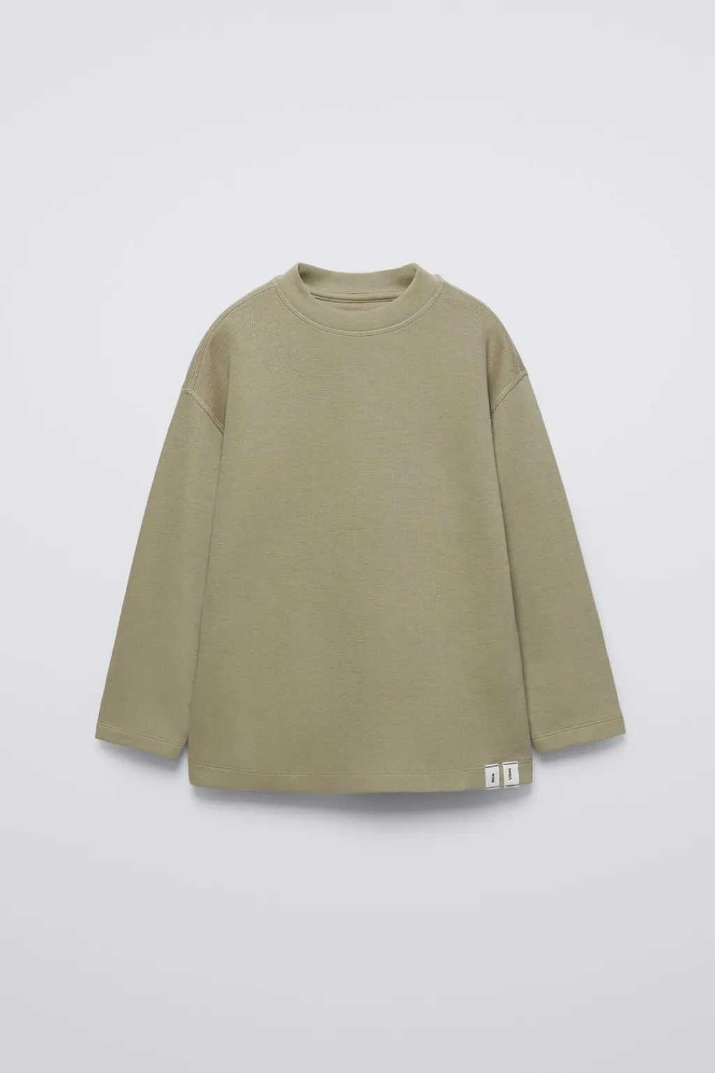 Camiseta con cuello redondo y manga larga. Aplique etiquetas en bajo.