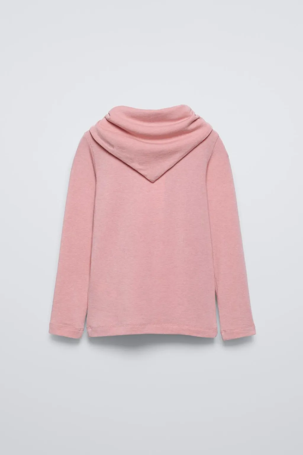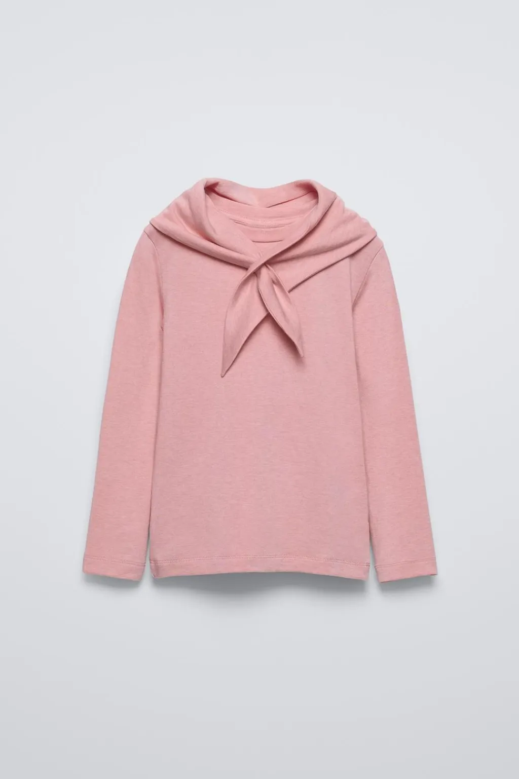 Camiseta con cuello redondo y manga larga. Detalle de pañuelo desmontable. Tejido con un 19% de lana.