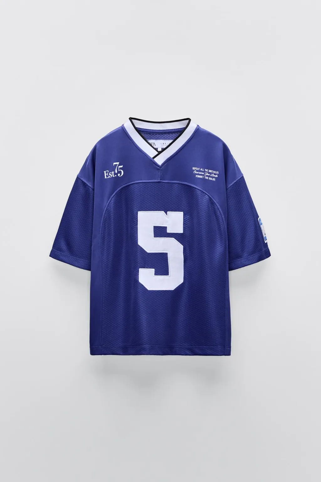 Camiseta con cuello pico y manga corta con aplique etiqueta. Detalle número bordado en delantero y estampado en espalda.