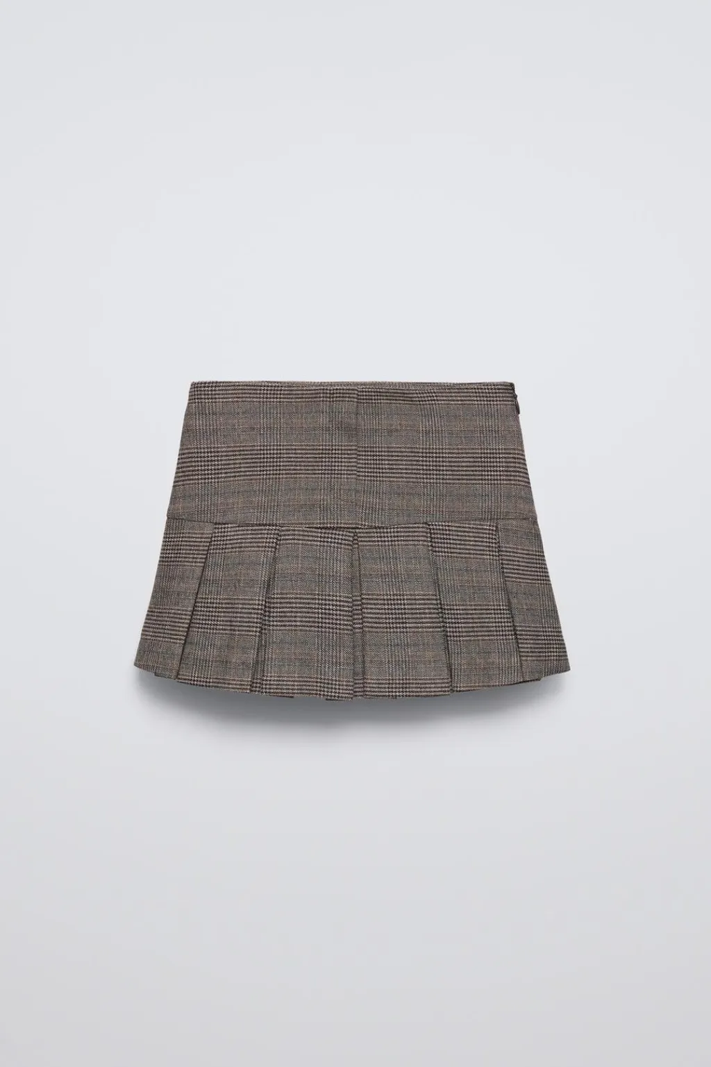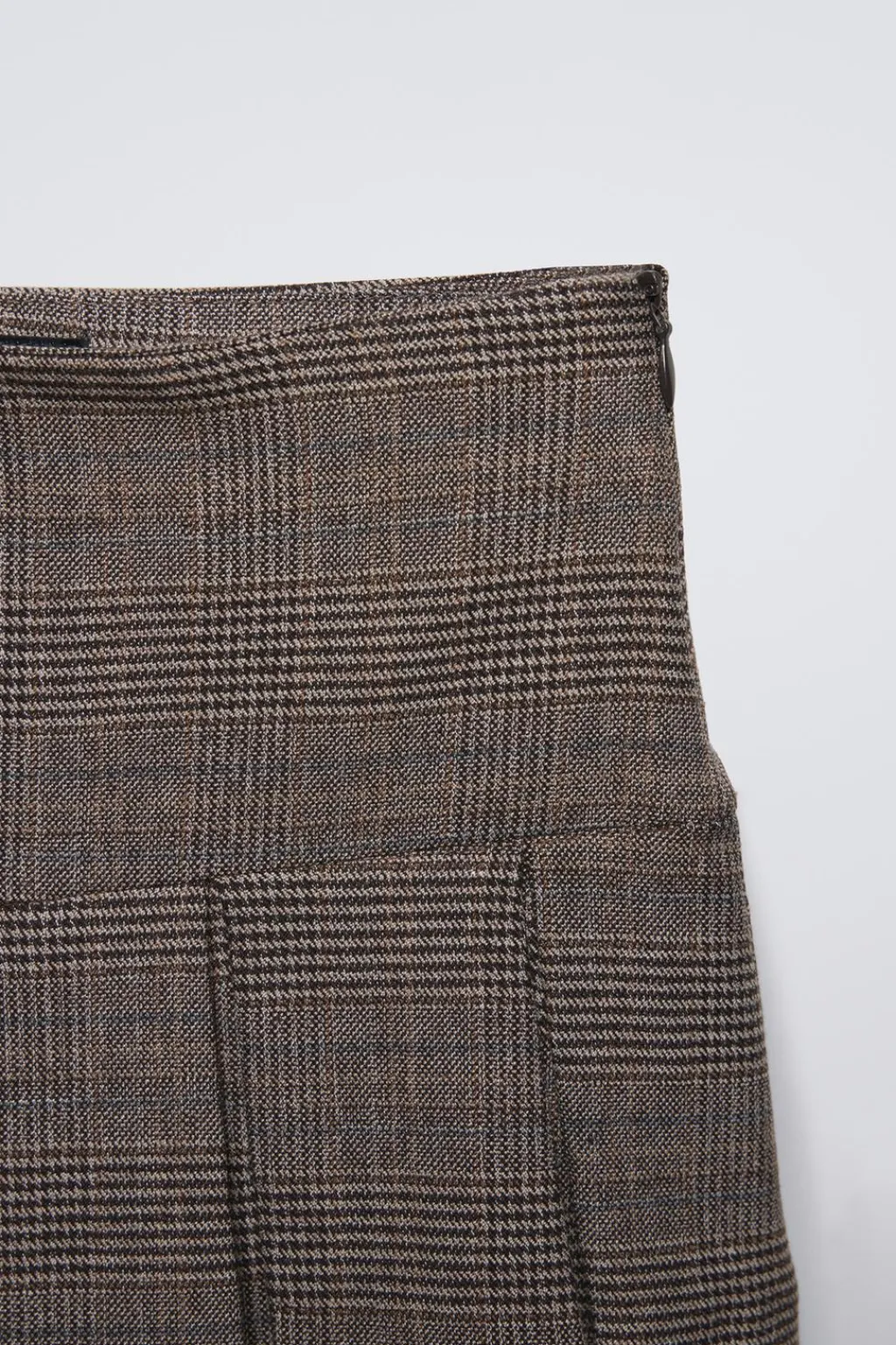 Falda con cinturilla interior ajustable. Cierre con cremallera en lateral. Estampado cuadros.