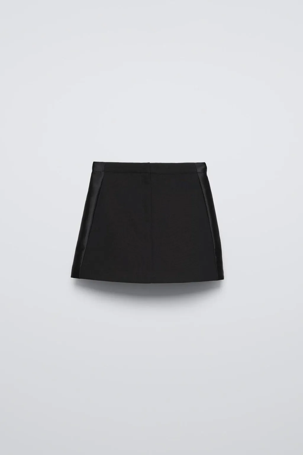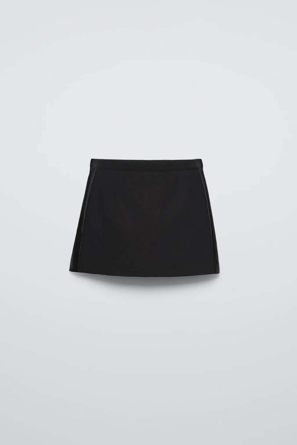 Falda con cinturilla interior ajustable y cierre metálico frontal. Bolsillos laterales ocultos por costura. Banda lateral con tejido satinado.