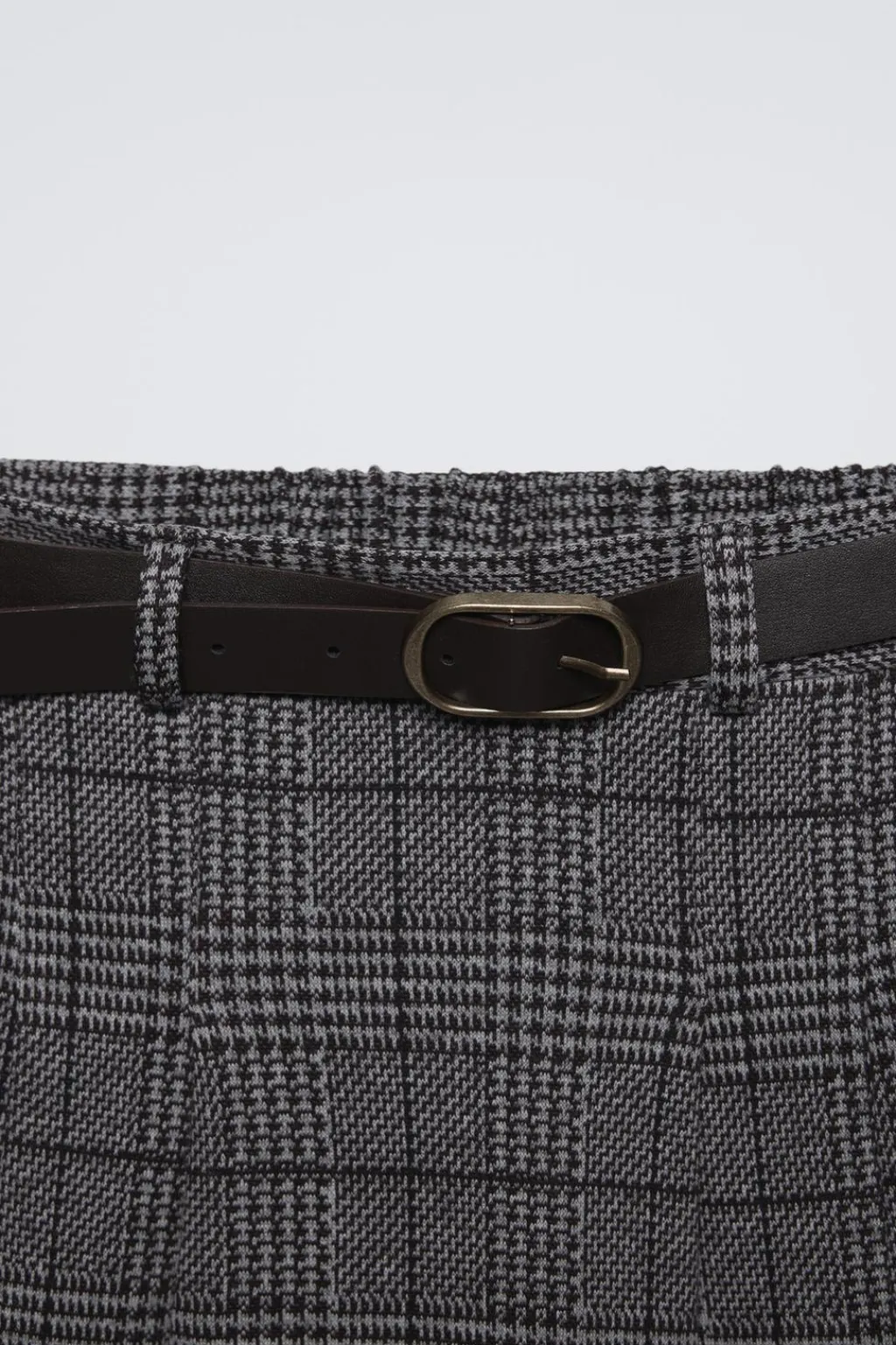 Falda tipo bermuda con cinturilla elástica. Detalle cinturón ajustable con trabillas. Falsa bolsillo en espalda.