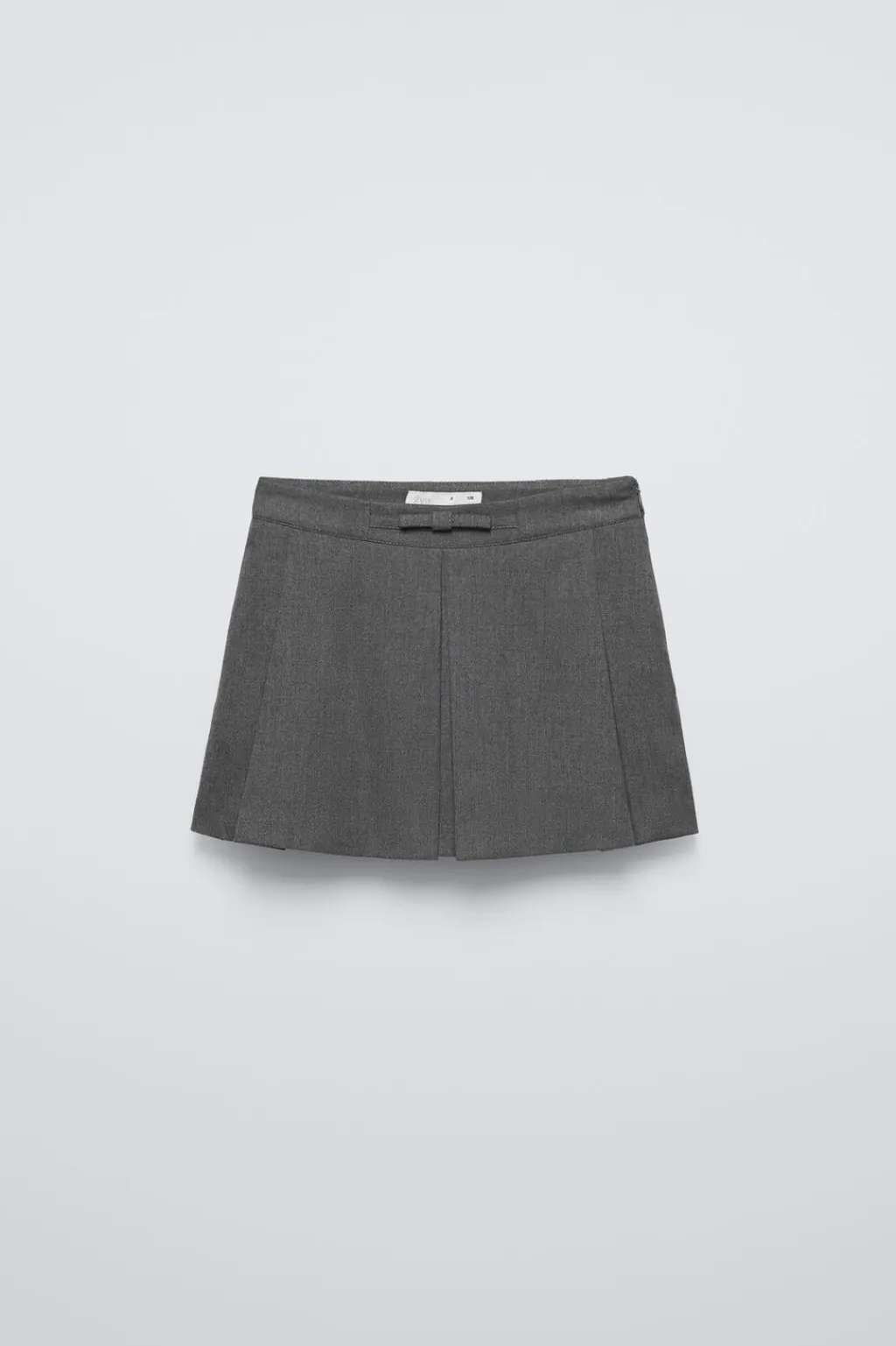 Falda tipo bermuda con cierre cremallera oculta en lateral. Bolsillos en delantero. Aplique lazo en delantero.